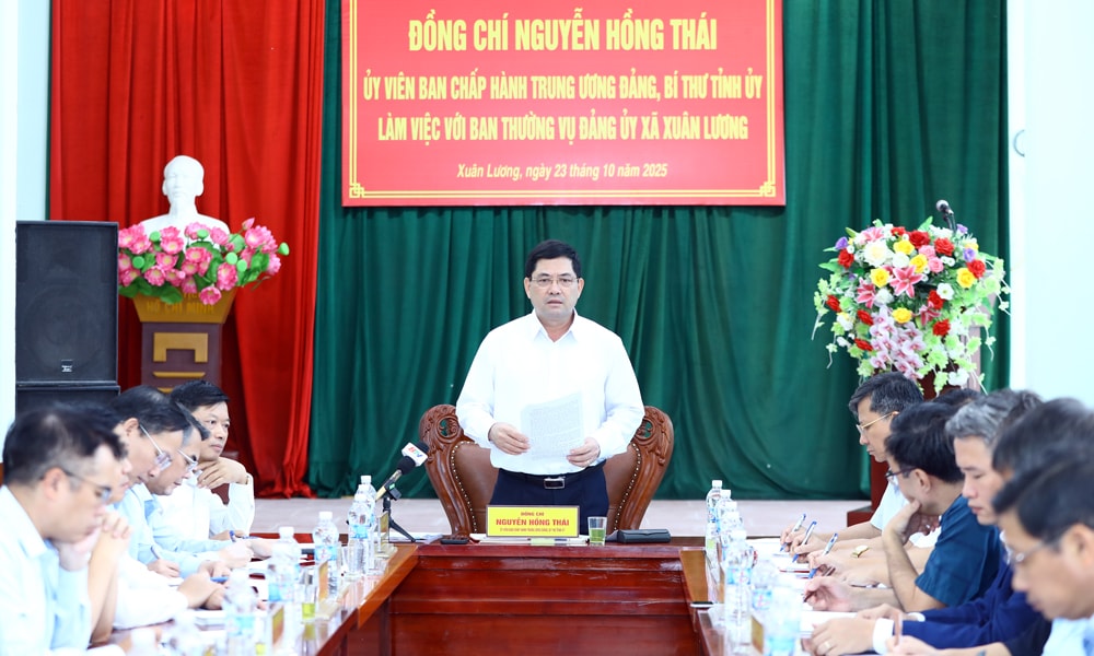 Báo Đại biểu nhân dân đưa tin: Bí thư tỉnh ủy Nguyễn Hồng Thái đã làm việc với Ban Thường vụ Đảng ủy xã Xuân Lương để nắm tình hình, kết quả thực hiện nhiệm vụ chính trị của xã và nhiệm vụ trọng tâm trong thời gian tới.