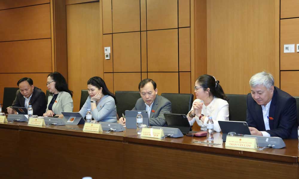 Các đại biểu Quốc hội (Đoàn Bắc Ninh) trong phiên thảo luận tại tổ, sáng 7/11.