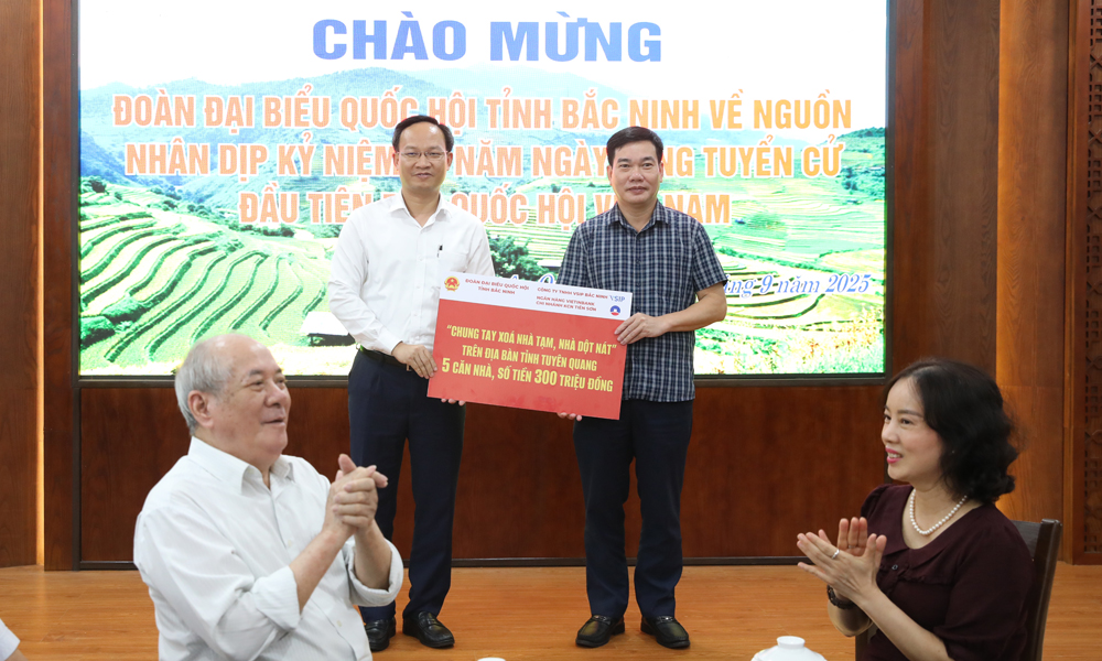 Nhân dịp này, Đoàn Đại biểu Quốc hội tỉnh Bắc Ninh trao 300 triệu đồng ủng hộ tỉnh Tuyên Quang thực hiện chương trình xoá nhà tạm, nhà dột nát./.