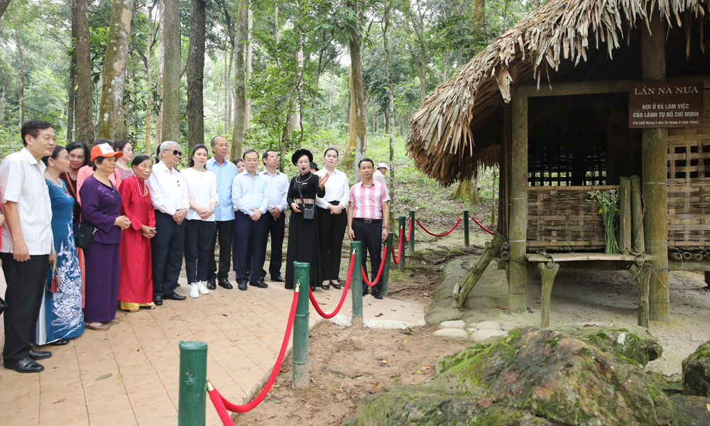 Tiếp đó, đoàn đến thăm, dâng hương tìm hiểu truyền thống, lịch sử tại Lán Nà Nưa, Đình Tân Trào, Khu tưởng niệm các vị tiền bối cách mạng thuộc Khu di tích lịch sử Quốc gia đặc biệt Tân Trào.