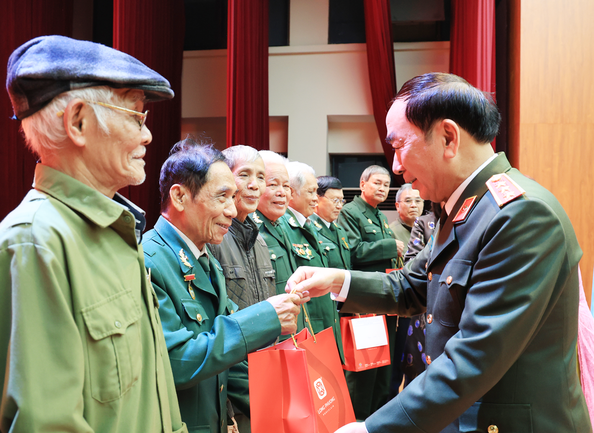 Thượng tướng Trần Quốc Tỏ trao quà cho các hội viên Hội chiến sỹ cách mạng bị địch bắt tù đày.