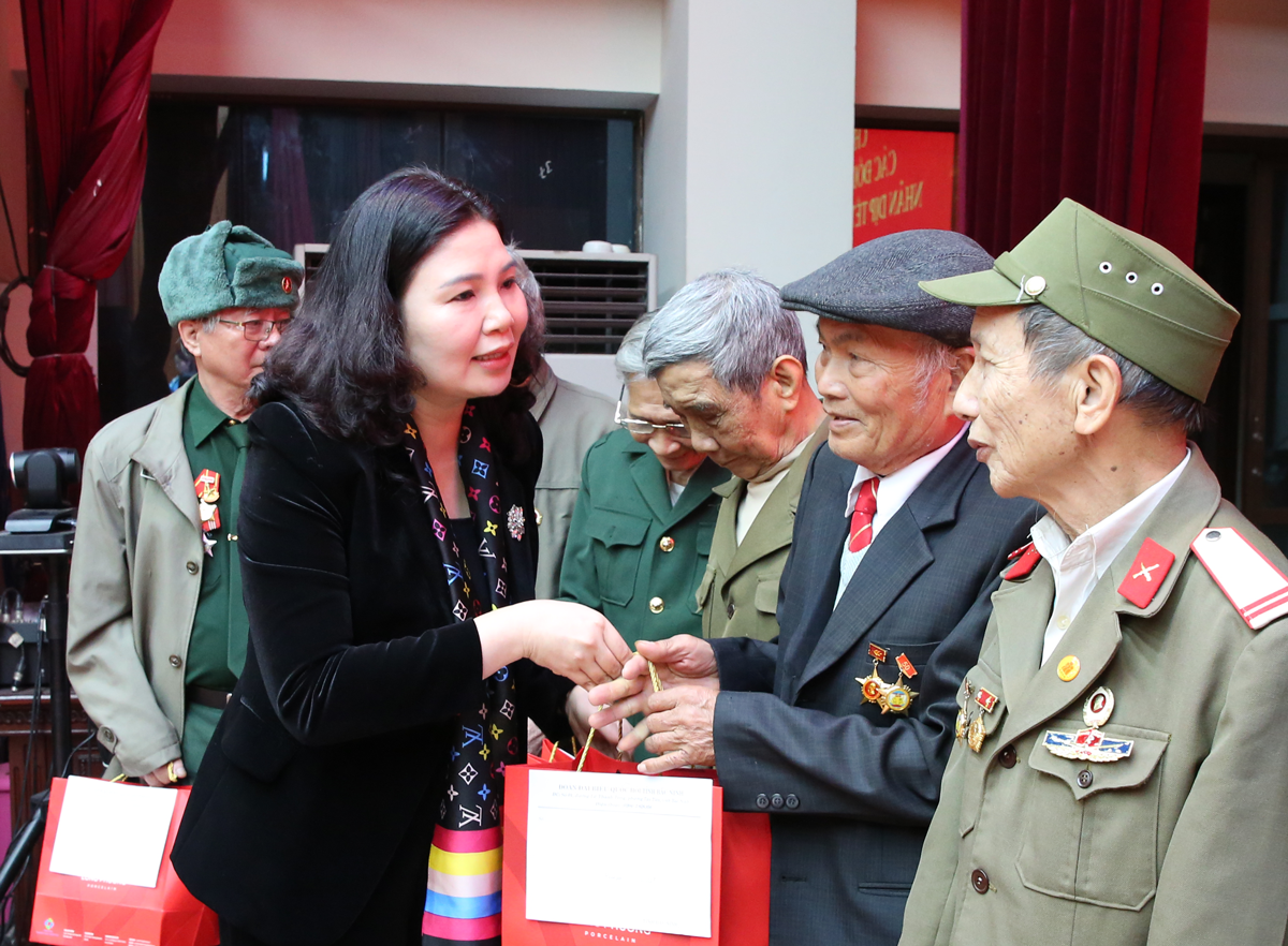 Bộ trưởng Bộ Y tế Đào Hồng Lan trao quà tặng các hội viên Hội chiến sỹ cách mạng bị địch bắt tù đày.