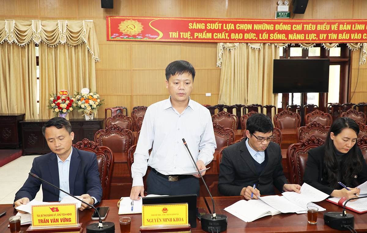 Chủ tịch UBND xã Tiên Du Nguyễn Minh Khoa trình bày báo cáo tại hội nghị.