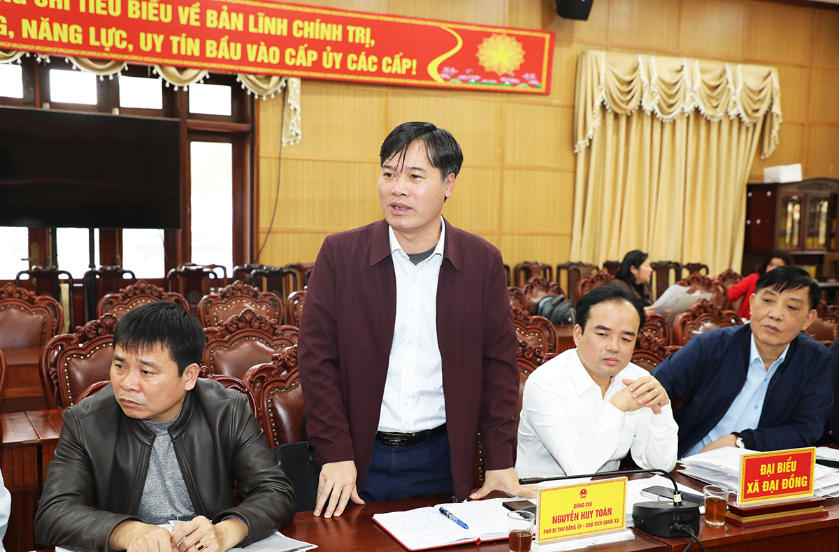 Chủ tịch HĐND xã Đại Đồng Nguyễn Huy Toàn phát biểu tại hội nghị.