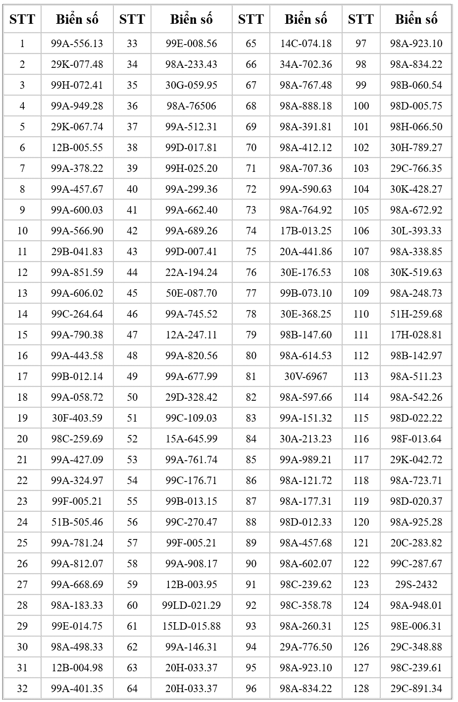 Dưới đây là danh sách chi tiết 128 trường hợp ô tô không chấp hành chỉ dẫn của vạch kẻ đường: