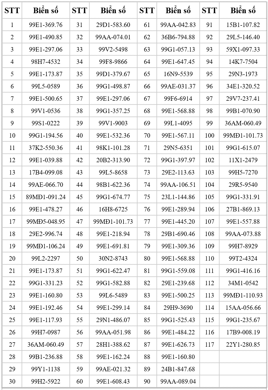 Dưới đây là danh sách chi tiết 117 trường hợp xe mô tô không chấp hành hiệu lệnh của đèn tín hiệu giao thông: