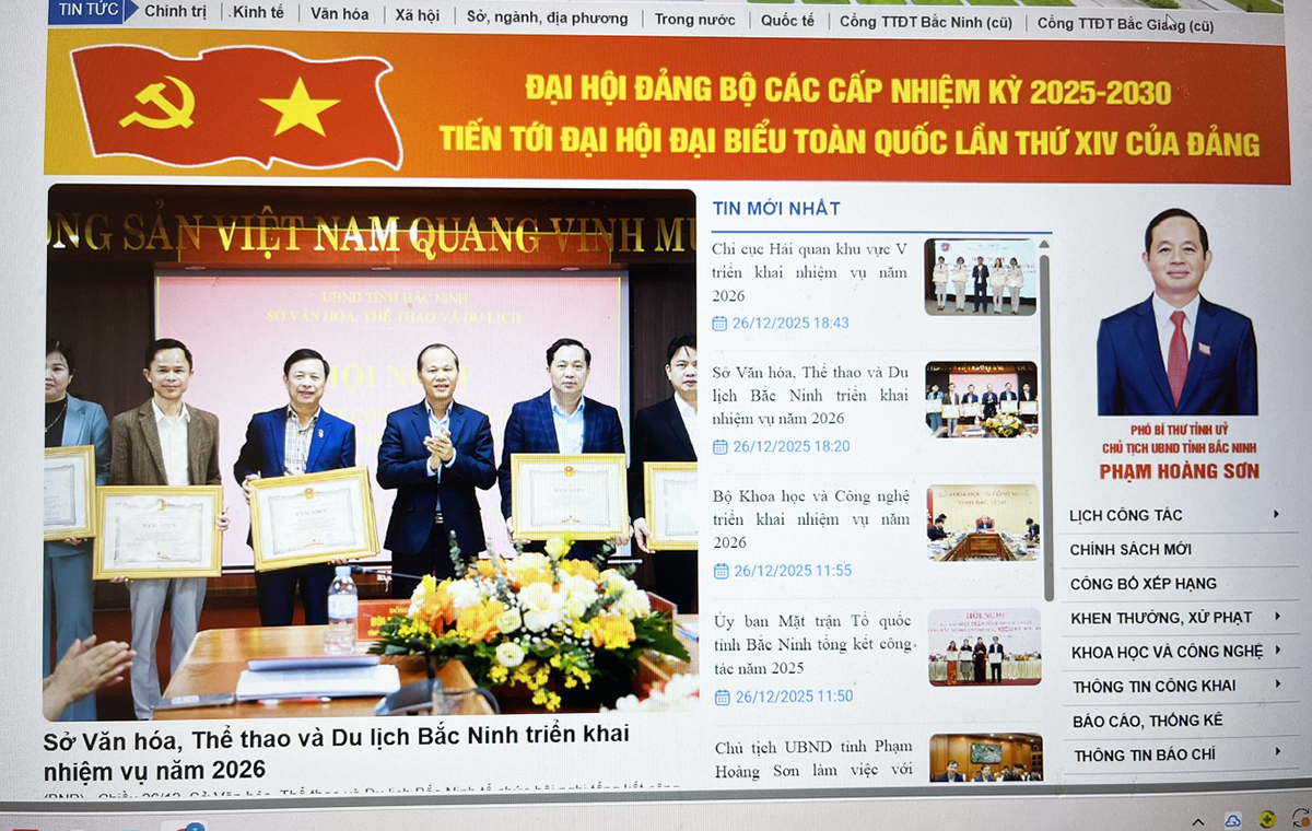 Cổng TTĐT tỉnh Bắc Ninh là kênh thông tin chính thức của tỉnh trên môi trường Internet.
