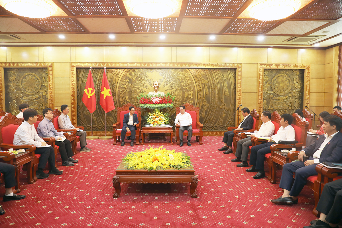(BNP) - Sáng 06/4, tại trụ sở Tỉnh ủy, đồng chí Nguyễn Hồng Thái, Ủy viên Trung ương Đảng, Bí thư Tinh ủy tiếp và làm việc với ông Kim Sung Hun, Tổng Giám đốc Công ty TNHH Amkor Technology Việt Nam đến thăm, làm việc tại tỉnh.