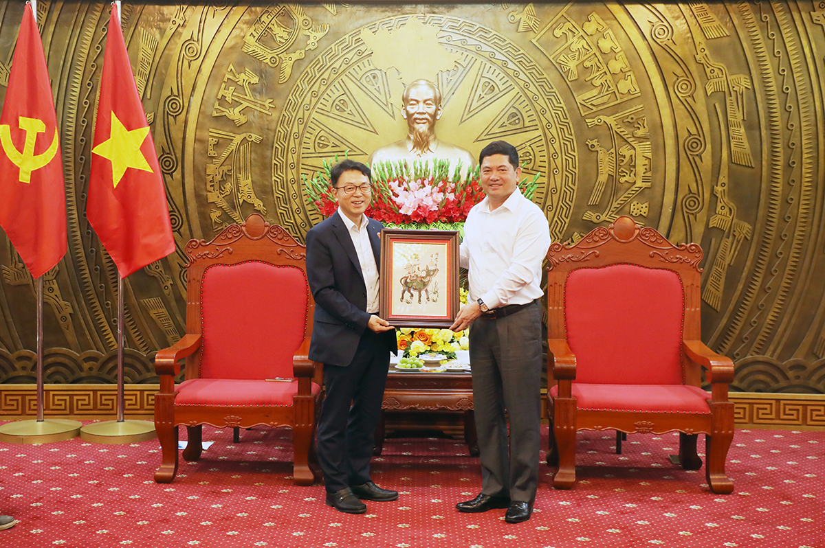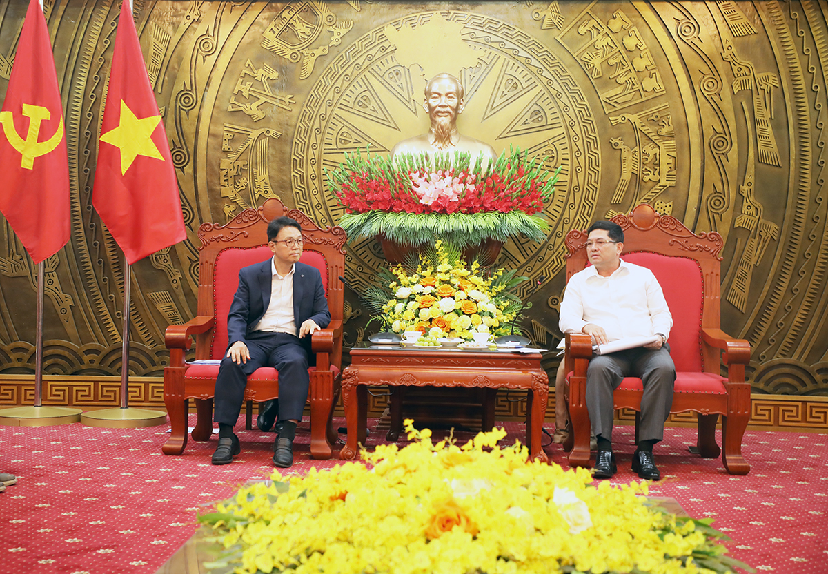 Bí thư Tỉnh ủy Nguyễn Hồng Thái cảm ơn ông Kim Sung Hun cùng đoàn công tác đã tới thăm, làm việc tại tỉnh.