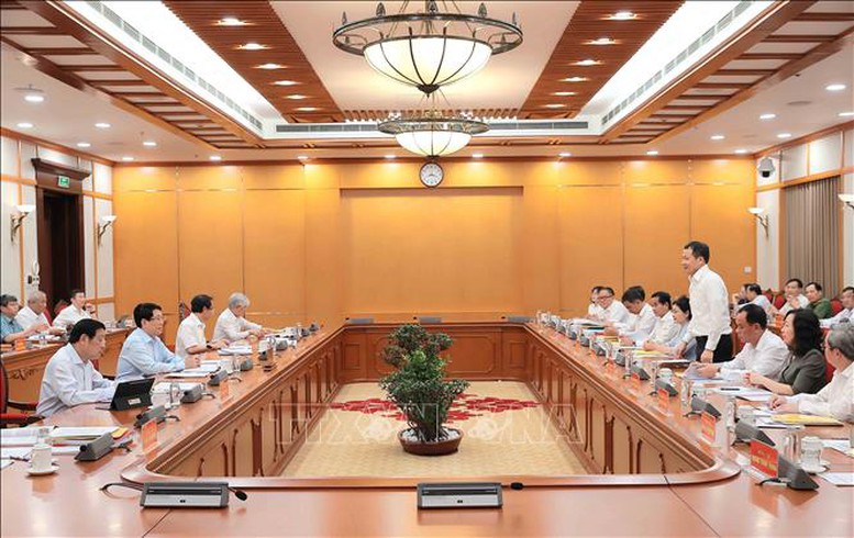 Đồng chí Trần Cẩm Tú, Uỷ viên Bộ Chính trị, Thường trực Ban Bí thư chủ trì buổi làm việc - Ảnh: TTXVN