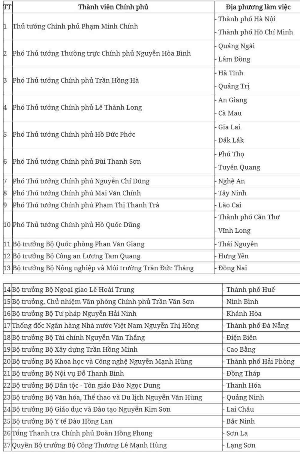 Quyết định nêu rõ, Thủ tướng phân công nhiệm vụ các Thành viên Chính phủ chủ trì làm việc với các địa phương để đôn đốc triển khai thực hiện: