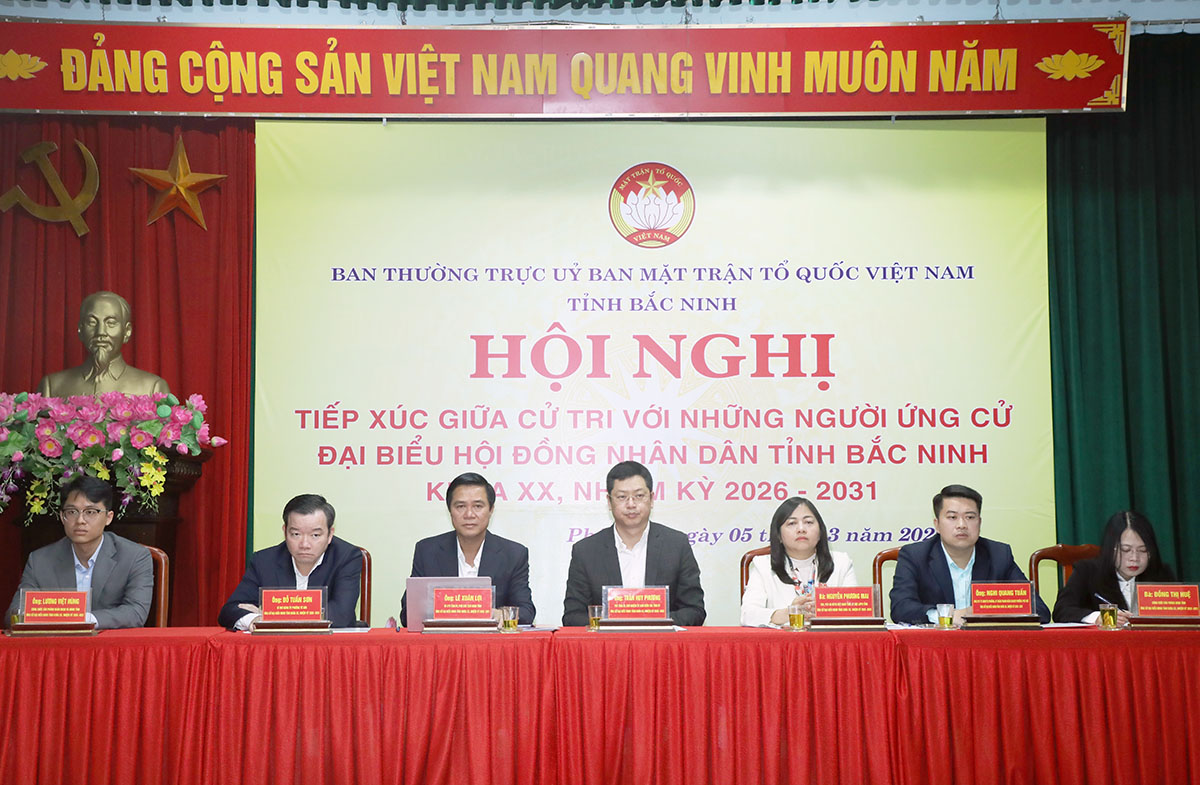 (BNP) - Sáng 05/3, tại phường Phù Khê, Ban Thường trực Ủy ban MTTQ tỉnh Bắc Ninh tổ chức Hội nghị tiếp xúc giữa cử tri với những người ứng cử đại biểu HĐND tỉnh khóa XX, nhiệm kỳ 2026 - 2031 thuộc đơn vị bầu cử số 12.