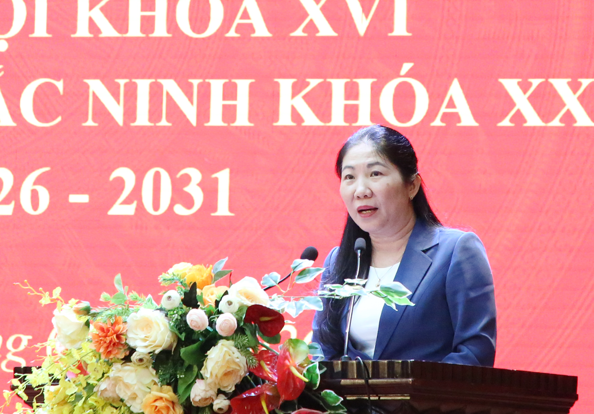 Phó Chủ tịch Thường trực HĐND tỉnh Trần Thị Hằng trình bày chương trình hành động.