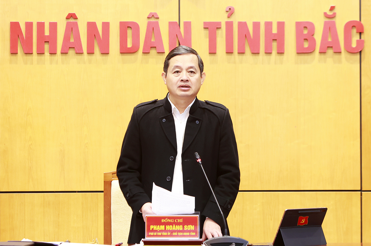 Chủ tịch UBND tỉnh Phạm Hoàng Sơn phát biểu kết luận cuộc họp.
