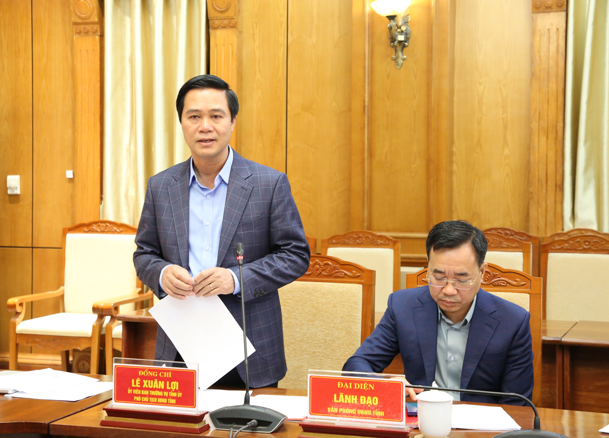 Phó Chủ tịch UBND tỉnh Lê Xuân Lợi trao đổi tại buổi làm việc.