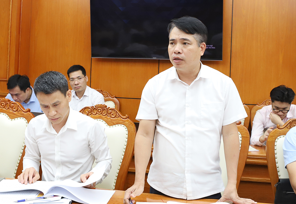 Giám đốc Sở Xây dựng trao đổi tại buổi làm việc.