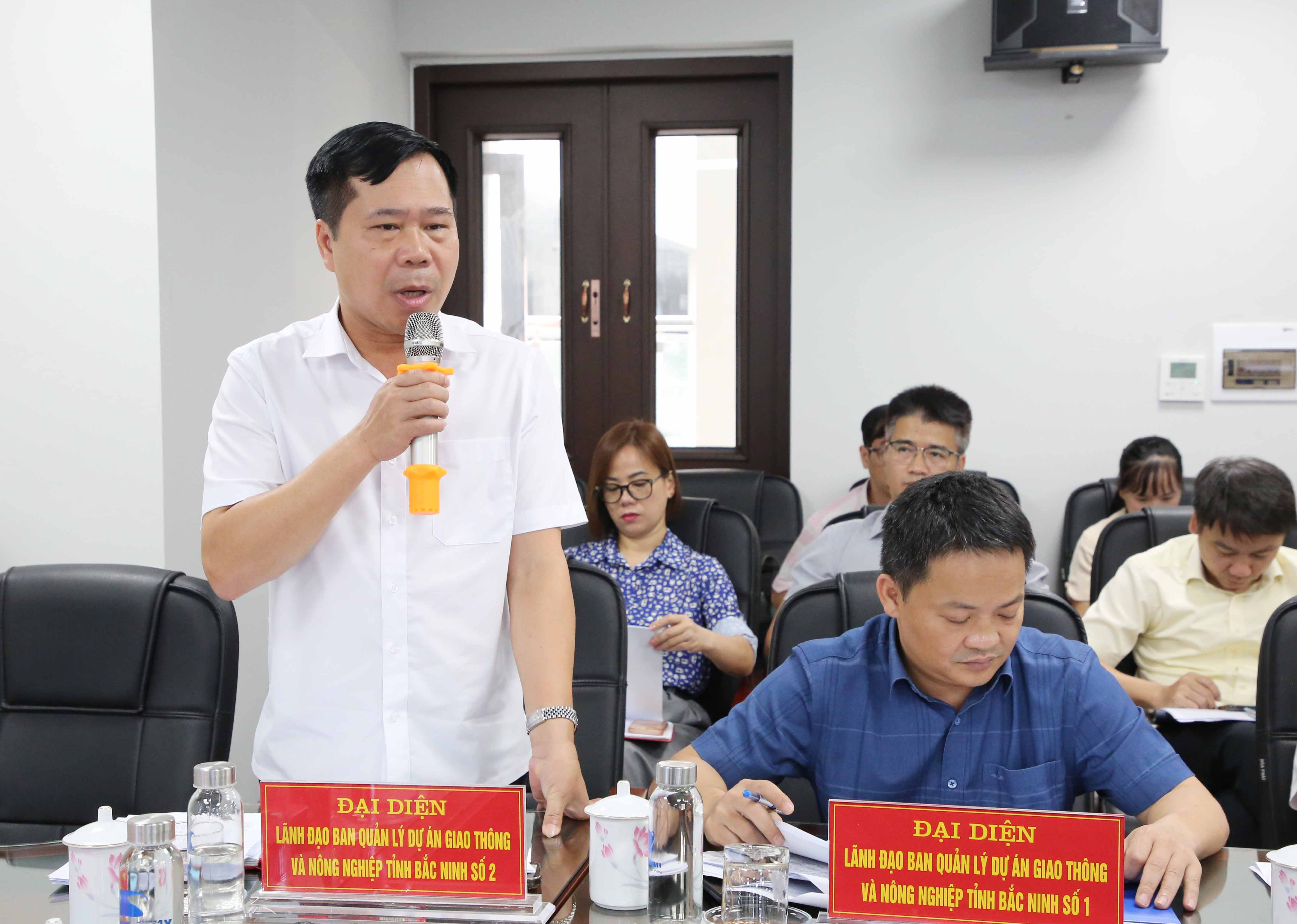 Giám đốc Ban Quản lý dự án Giao thông và Nông nghiệp tỉnh Bắc Ninh số 2 Nguyễn Xuân Đương trao đổi một số nội dung tại buổi làm việc.