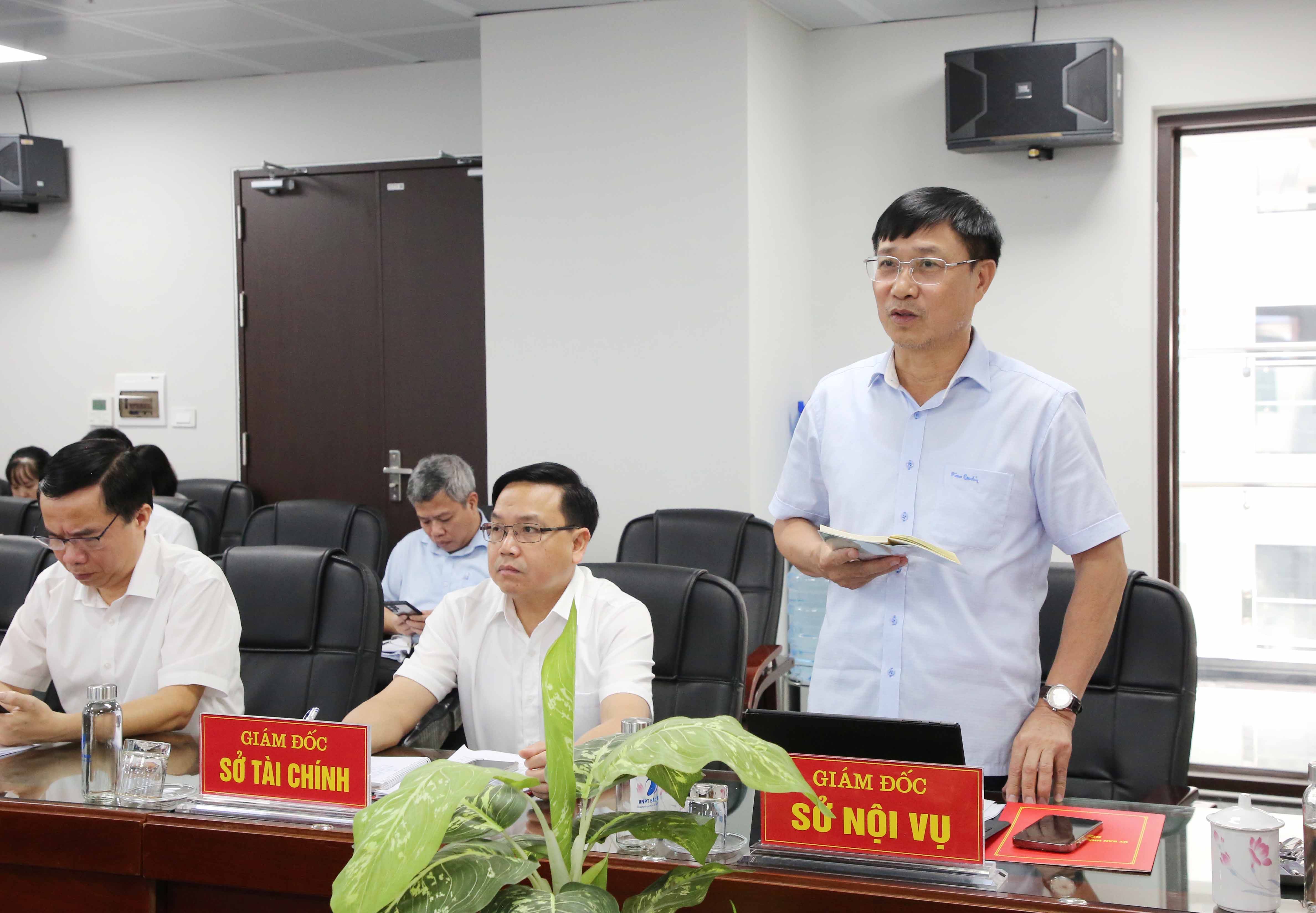 Giám đốc Sở Nội vụ Vũ Mạnh Hùng trao đổi một số nội dung trong buổi làm việc.
