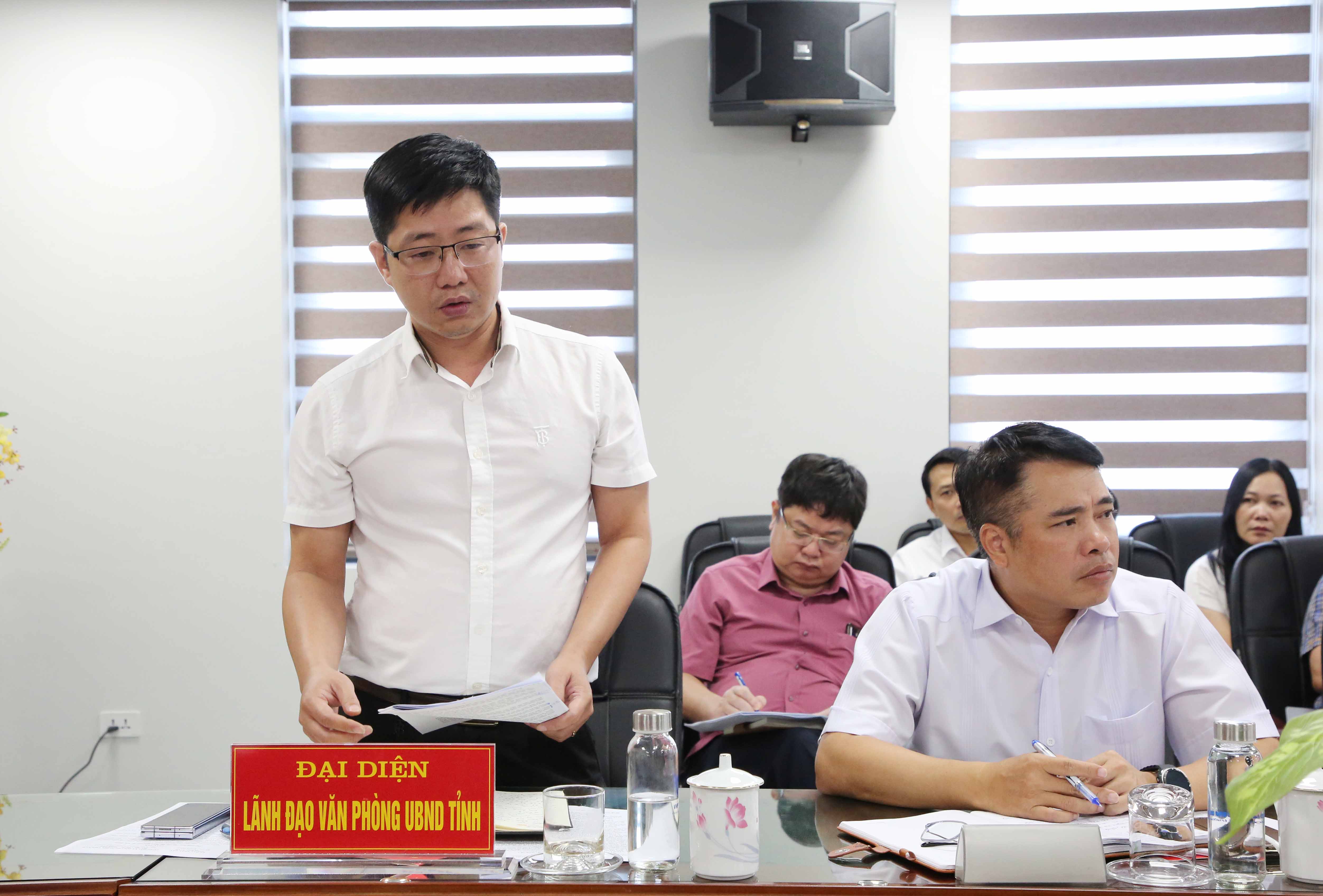 Phó Chánh Văn phòng UBND tỉnh Nguyễn Trung Trực phát biểu tại buổi làm việc.