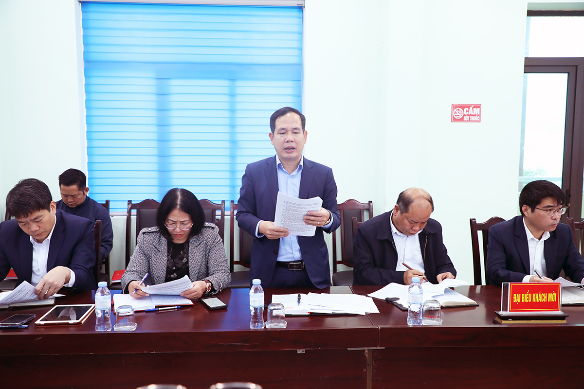 Phó Bí thư Thường trực Đảng ủy, Chủ tịch HĐND xã Nhân Thắng Nguyễn Chí Mỹ trình bày báo cáo tại hội nghị.