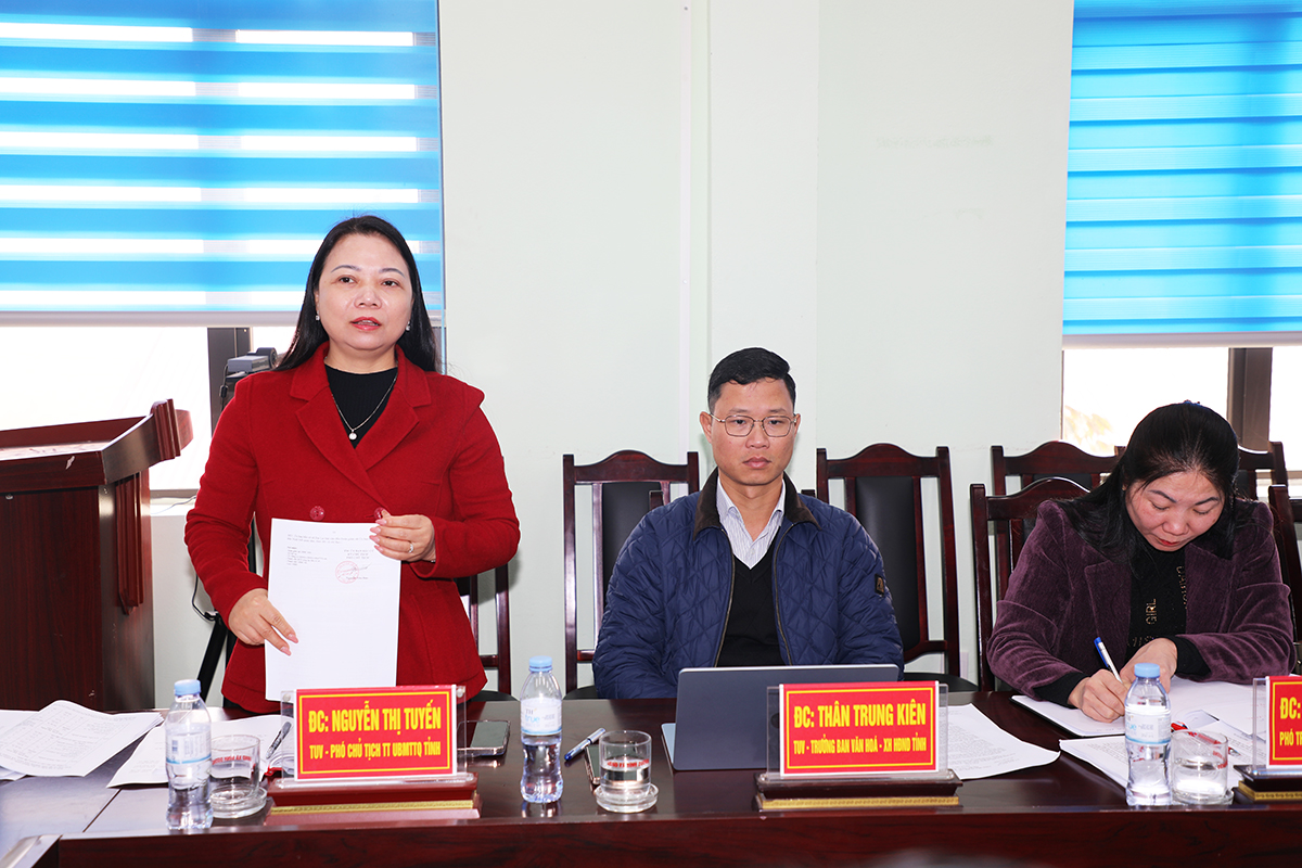 Đồng chí Nguyễn Thị Tuyến, Tỉnh ủy viên, Phó Chủ tịch Thường trực Ủy ban MTTQ tỉnh phát biểu tại hội nghị.