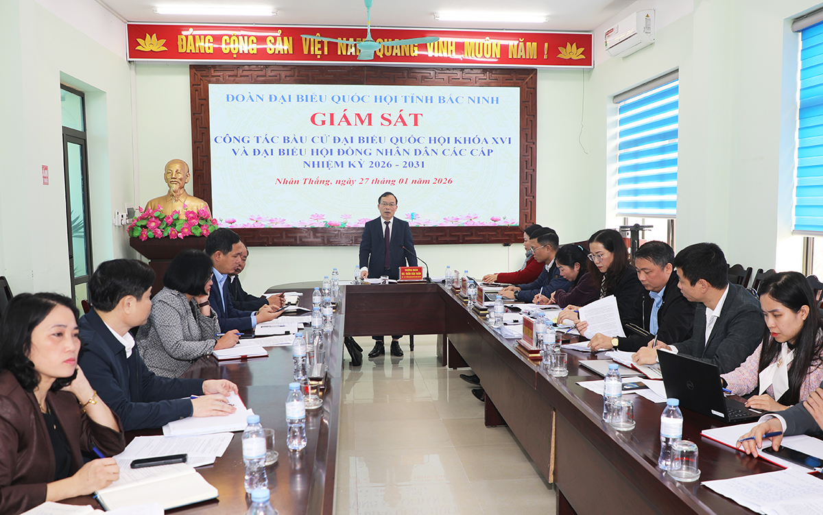 (BNP) - Sáng 27/1, Đoàn công tác do đồng chí Trần Văn Tuấn, Tỉnh ủy viên, Phó trưởng Đoàn Đại biểu Quốc hội (ĐBQH) tỉnh làm Trưởng đoàn tiến hành giám sát công tác bầu cử ĐBQH khóa XVI và đại biểu HĐND các cấp nhiệm kỳ 2026 - 2031 tại 3 xã: Nhân Thắng, Đại Lai và Gia Bình. Cùng dự có đại diện lãnh đạo Ủy ban MTTQ tỉnh, các Sở, ban, ngành, địa phương liên quan.