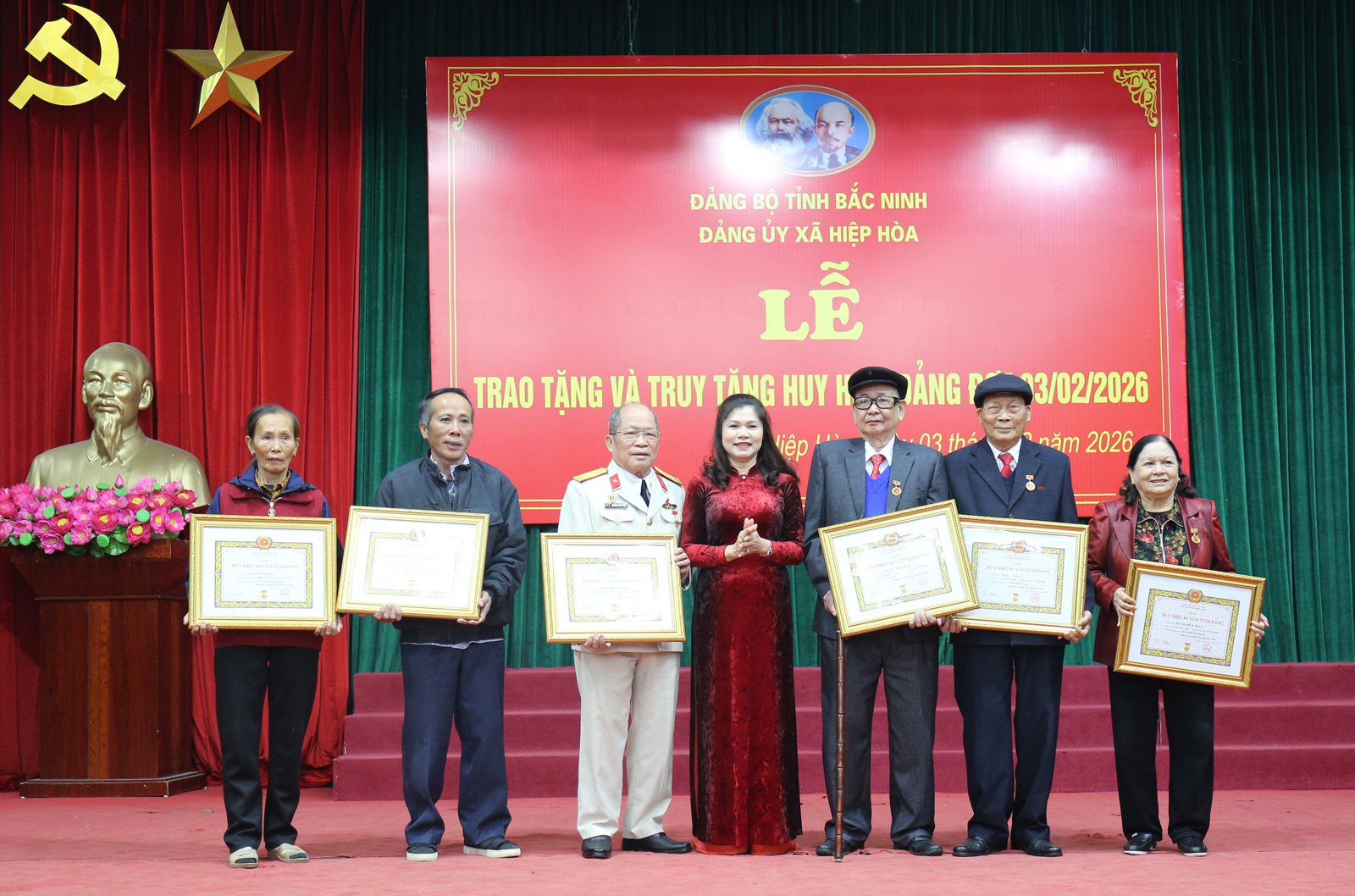 Sáng 03/2, đồng chí đồng chí Lâm Thị Hương Thành, Ủy viên Ban Thường vụ Tỉnh ủy, Phó Chủ tịch HĐND tỉnh dự Lễ trao Huy hiệu Đảng đợt 03/2/2026 tại Đảng bộ xã Hiệp Hòa.