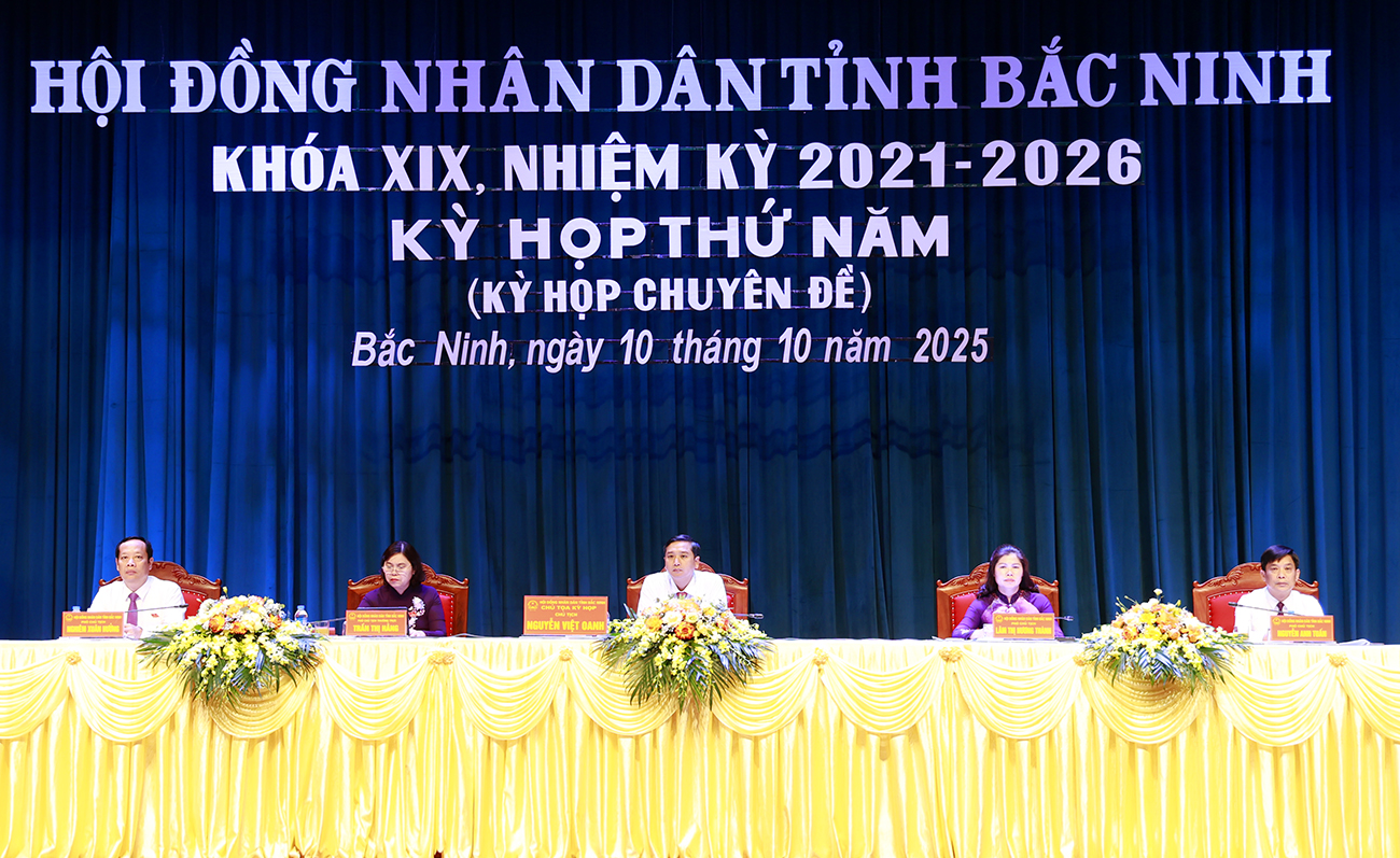 Chiều 10/10, HĐND tỉnh khóa XIX, nhiệm kỳ 2021 – 2026 tổ chức Kỳ họp thứ 5 (kỳ họp chuyên đề) nhằm xem xét, quyết nghị một số nội dung quan trọng thuộc thẩm quyền. Các đồng chí: Nguyễn Việt Oanh, Phó Bí thư Tỉnh ủy, Chủ tịch HĐND tỉnh; Trần Thị Hằng, Ủy viên BTV Tỉnh ủy, Phó Chủ tịch Thường trực HĐND tỉnh; Lâm Thị Hương Thành, Ủy viên BTV Tỉnh ủy, Phó Chủ tịch HĐND tỉnh; Nghiêm Xuân Hưởng, Phó Chủ tịch HĐND tỉnh; Nguyễn Anh Tuấn, Phó Chủ tịch HĐND tỉnh chủ tọa Kỳ họp. Tham dự Kỳ họp có các đồng chí: Nguyễn Hồng Thái, Uỷ viên Trung ương Đảng, Bí thư Tỉnh uỷ; Nguyễn Thị Hương, Phó Bí thư Thường trực Tỉnh ủy; Vương Quốc Tuấn, Ủy viên dự khuyết Trung ương Đảng, Phó Bí thư Tỉnh ủy, Chủ tịch UBND tỉnh; Nguyễn Thị Hà, Uỷ viên BTV Tỉnh uỷ, Chủ tịch Uỷ ban MTTQ tỉnh. Cùng dự có các đồng chí trong BTV Tỉnh uỷ, Uỷ viên BCH Đảng bộ tỉnh; đại diện lãnh đạo các sở, ban, ngành địa phương.