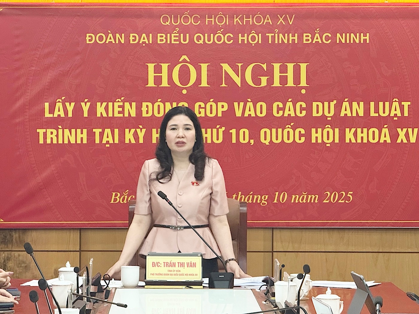 Sáng 16/10, Đoàn đại biểu Quốc hội (ĐBQH) tỉnh Bắc Ninh tổ chức Hội nghị lấy ý kiến đóng góp vào các dự án Luật trình tại Kỳ họp thứ 10, Quốc hội khóa XV. Đồng chí Trần Thị Vân, Phó Trưởng Đoàn ĐBQH tỉnh chủ trì hội nghị. Cùng dự có đồng chí Nghiêm Xuân Hưởng, Phó Chủ tịch HĐND tỉnh; đại diện lãnh đạo một số sở, ngành, đơn vị, trường học trên địa bàn tỉnh.