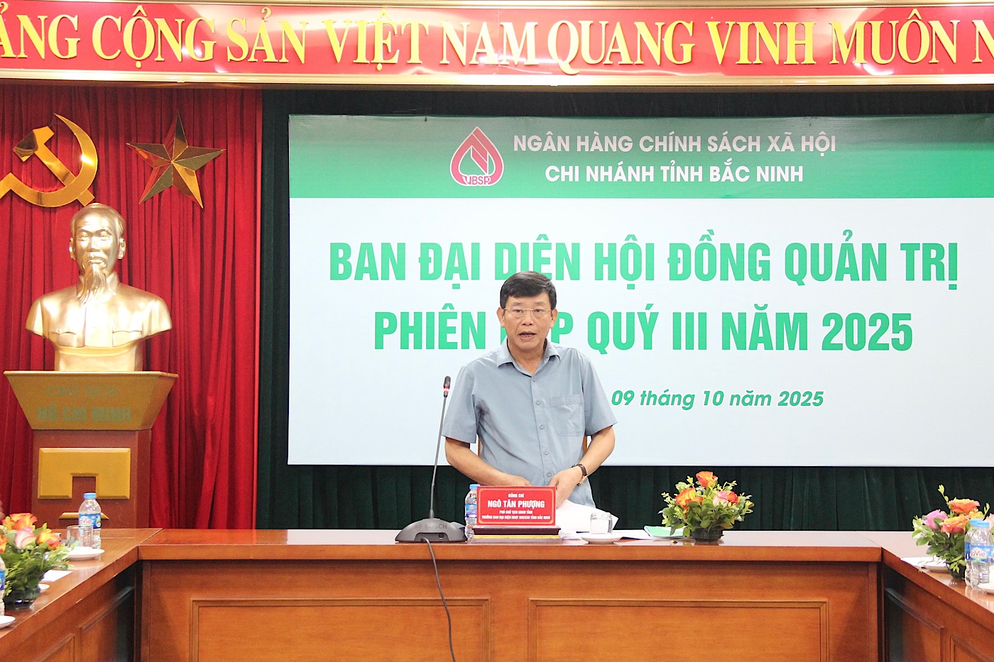 Chiều 9/10, Ban đại diện Hội đồng quản trị (HĐQT) Ngân hàng Chính sách xã hội (NHCSXH) tỉnh Bắc Ninh tổ chức phiên họp thường kỳ quý III, triển khai nhiệm vụ quý IV năm 2025. Đồng chí Ngô Tân Phượng, Phó Chủ tịch UBND tỉnh, Trưởng Ban đại diện HĐQT NHCSXH tỉnh chủ trì hội nghị.