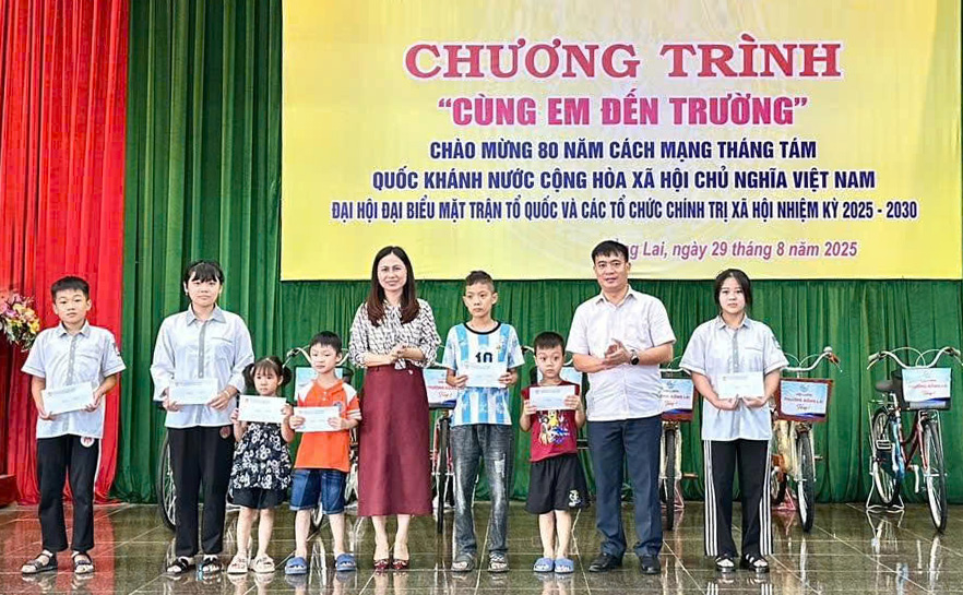 Theo đó, từ ngày 15/8 đến 5/9/2025, các cấp Hội phụ nữ trong tỉnh đã tích cực vận động cán bộ, hội viên, phụ nữ và các nhà hảo tâm trao tặng hơn 2.400 suất quà bằng tiền mặt, hơn 1.700 bộ sách vở, đèn học, cặp sách, 261 bộ quần áo và 254 xe đạp, với tổng trị giá gần 2 tỷ đồng. Bên cạnh đó, Hội LHPN tỉnh đã phối hợp chặt chẽ cùng các ban, ngành, đoàn thể, chính quyền địa phương và cộng đồng doanh nghiệp trao tặng trên 8.600 suất quà bằng tiền mặt, 1.890 bộ sách vở, đồ dùng học tập và 166 xe đạp, với tổng trị giá gần 2,5 tỷ đồng.