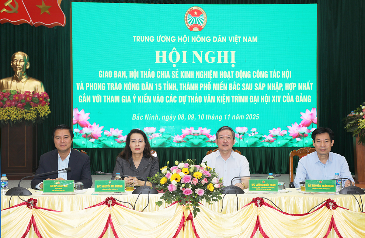 (BNP) - Sáng 10/11, tại Trung tâm Hội nghị tỉnh (phường Bắc Giang), Trung ương Hội Nông dân Việt Nam tổ chức Hội nghị giao ban, hội thảo chia sẻ kinh nghiệm hoạt động công tác Hội và phong trào nông dân 15 tỉnh, thành phố miền Bắc sau sáp nhập, hợp nhất gắn với tham gia ý kiến vào các dự thảo văn kiện trình Đại hội đại biểu toàn quốc lần thứ XIV của Đảng.