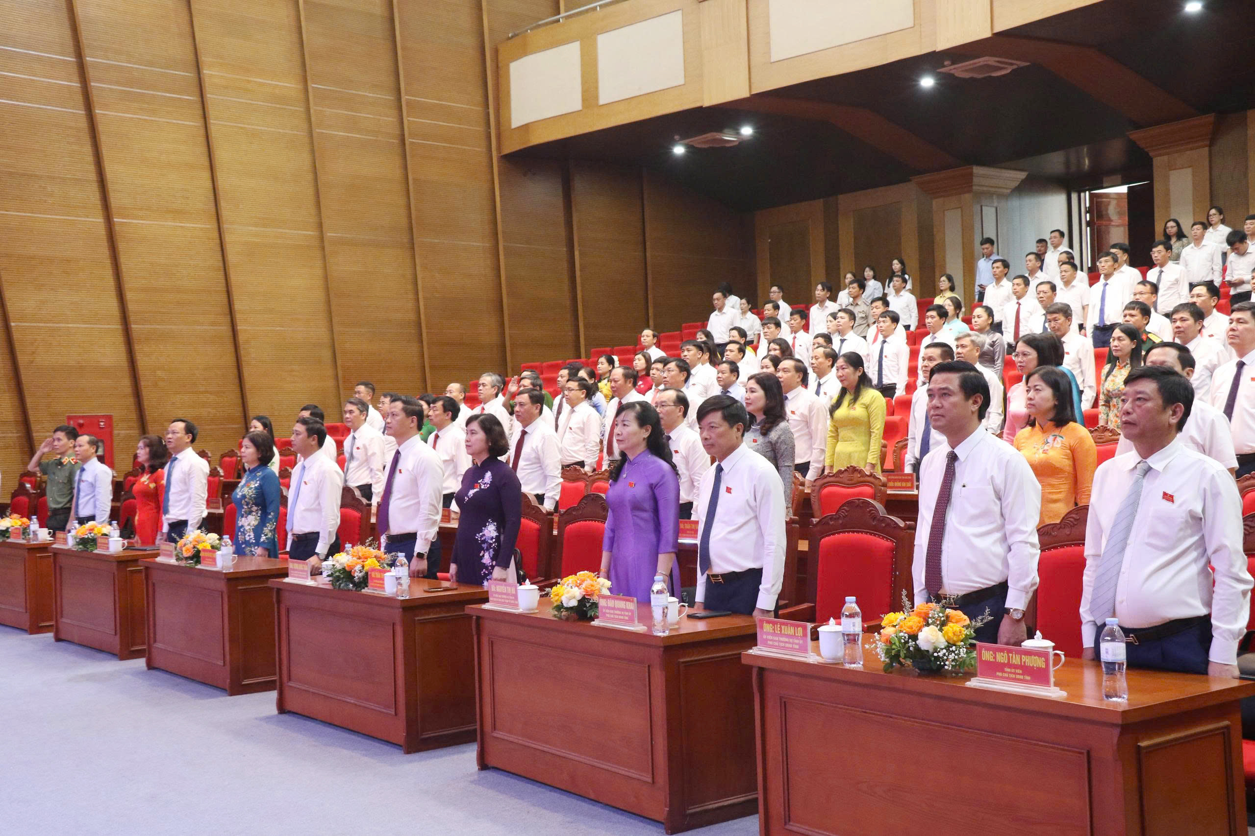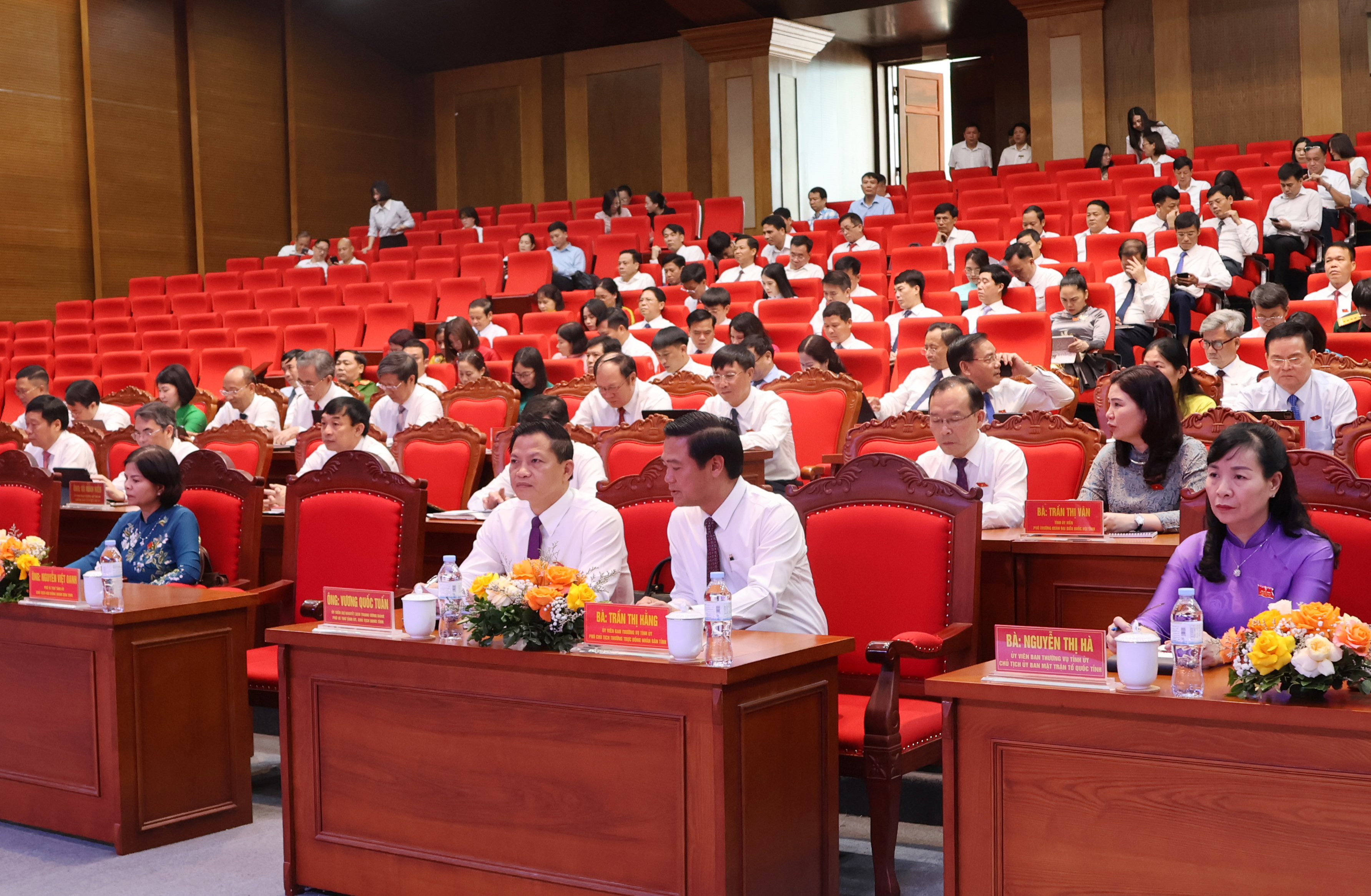 Chủ tọa Kỳ họp có các đồng chí: Nguyễn Việt Oanh, Phó Bí thư Tỉnh ủy, Chủ tịch HĐND tỉnh; Trần Thị Hằng, Ủy viên Ban Thường vụ Tỉnh ủy, Phó Chủ tịch Thường trực HĐND tỉnh; Lâm Thị Hương Thành, Ủy viên Ban Thường vụ Tỉnh ủy, Phó Chủ tịch HĐND tỉnh; Nghiêm Xuân Hưởng, Phó Chủ tịch HĐND tỉnh; Nguyễn Anh Tuấn, Phó Chủ tịch Thường trực HĐND tỉnh.