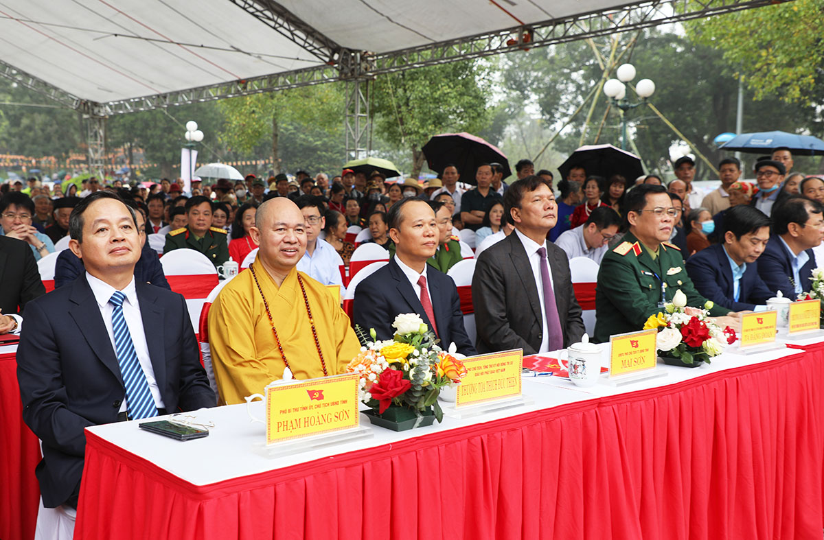 Tham dự có các đồng chí: Nguyễn Việt Oanh, Phó Bí thư Tỉnh ủy, Chủ tịch HĐND tỉnh; Phạm Hoàng Sơn, Phó Bí thư Tỉnh ủy, Chủ tịch UBND tỉnh; Mai Sơn, Ủy viên Ban Thường vụ Tỉnh ủy, Phó Chủ tịch Thường trực UBND tỉnh; Thượng tọa Thích Đức Thiện, Phó Chủ tịch, Tổng thư ký Hội đồng trị sự Trung ương Giáo hội Phật giáo Việt Nam; các đồng chí trong Ban Thường vụ Tỉnh ủy, Thường trực HĐND, UBND, Ủy ban MTTQ, Đoàn Đại biểu Quốc hội tỉnh; lãnh đạo các Sở, ngành, địa phương cùng đông đảo Nhân dân và du khách thập phương.