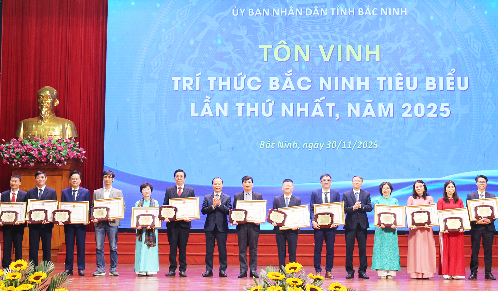 (BNP) – Sáng 30/11, tại Trung tâm Hội nghị tỉnh, UBND tỉnh tổ chức Lễ tôn vinh trí thức Bắc Ninh tiêu biểu, trao Giải thưởng Khoa học và Công nghệ (KHCN), Hội thi Sáng tạo kỹ thuật tỉnh Bắc Ninh, lần thứ Nhất, năm 2025.