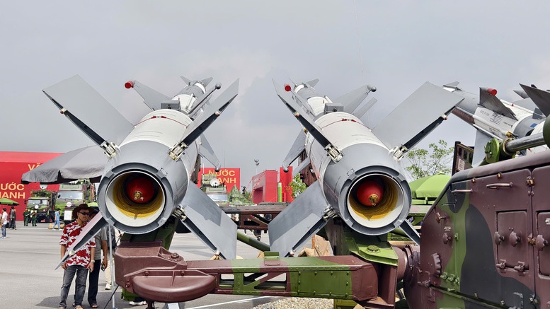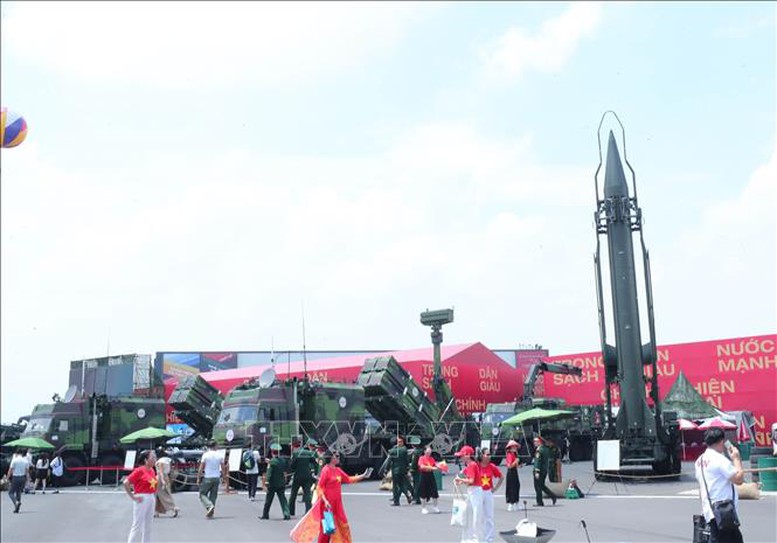 Khu trưng bày ngoài trời với các loại tên lửa, khí tài do công nghiệp quốc phòng Việt Nam nghiên cứu, chế tạo - Ảnh: TTXVN