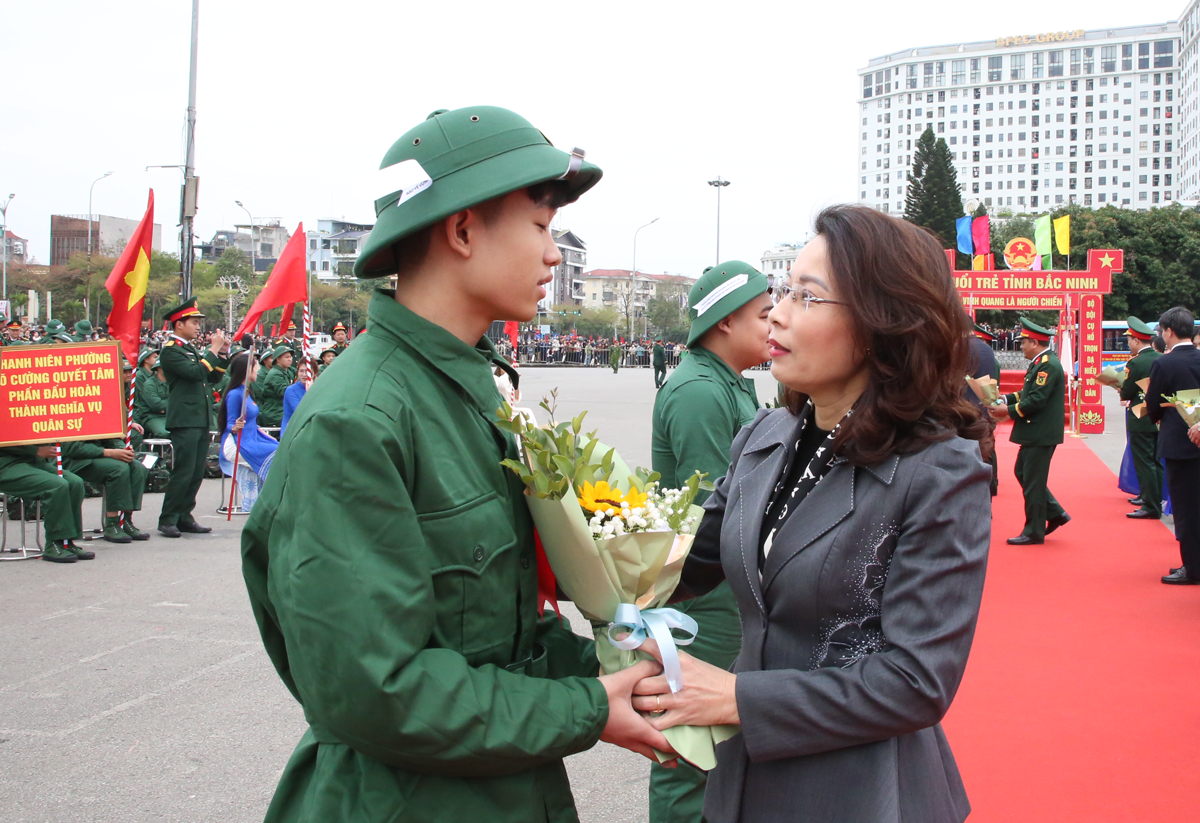 Đối với các tân binh nhập ngũ đợt này, Phó Chủ tịch UBND tỉnh lưu ý, cần xác định rõ đây là niềm vinh dự, tự hào của bản thân, gia đình, địa phương và cũng là trách nhiệm, nghĩa vụ cao cả, làm tròn nhiệm vụ xây dựng và bảo vệ vững chắc Tổ quốc Việt Nam xã hội chủ nghĩa. Đồng chí mong muốn các tân binh phát huy truyền thống quê hương Bắc Ninh văn hiến, khoa bảng và anh hùng cũng như truyền thống vẻ vang của các đơn vị lực lượng vũ trang Nhân dân, ra sức học tập, rèn luyện, hoàn thành xuất sắc nhiệm vụ của người quân nhân cách mạng, chấp hành nghiêm chủ trương, đường lối của Đảng, chính sách, pháp luật của Nhà nước; thực hiện tốt 10 lời thề danh dự, 12 điều kỷ luật của Quân đội Nhân dân, 6 điều Bác Hồ dạy Công an Nhân dân và các quy định của đơn vị; luôn đoàn kết, gắn bó thương yêu, tương trợ giúp đỡ lẫn nhau để cùng hoàn thành xuất sắc nhiệm vụ.