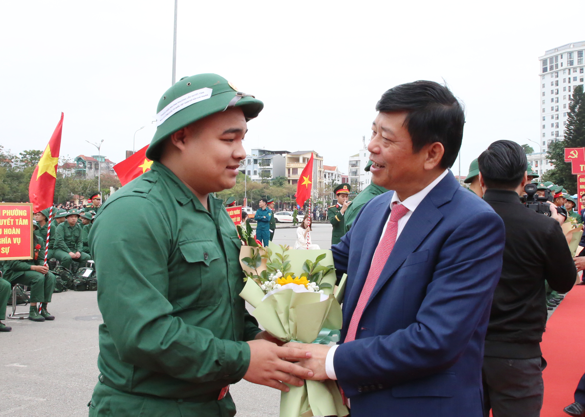 Phó Chủ tịch UBND tỉnh nhấn mạnh, các tân binh đều là những đồng chí đảng viên, đoàn viên tiêu biểu đại diện cho hàng nghìn thanh niên trong tỉnh được tuyển chọn nhập ngũ vào Quân đội nhân dân và Công an nhân dân, nhằm tiếp tục xây dựng Quân đội, Công an cách mạng, chính quy, tinh nhuệ, hiện đại, góp phần xây dựng và bảo vệ vững chắc Tổ quốc Việt Nam xã hội chủ nghĩa trong tình hình mới.