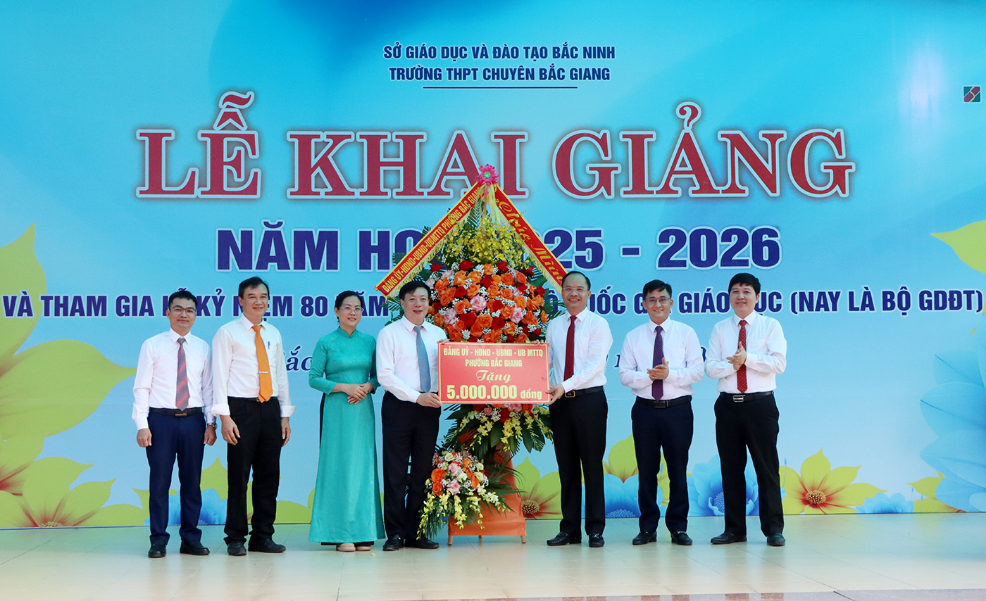 Dự buổi lễ có đồng chí Nguyễn Hương Giang, Phó Bí thư Tỉnh ủy; đại diện lãnh đạo Sở Giáo dục và Đào tạo, Văn phòng Tỉnh ủy, phường Bắc Giang cùng toàn thể cán bộ, giáo viên và học sinh nhà trường.