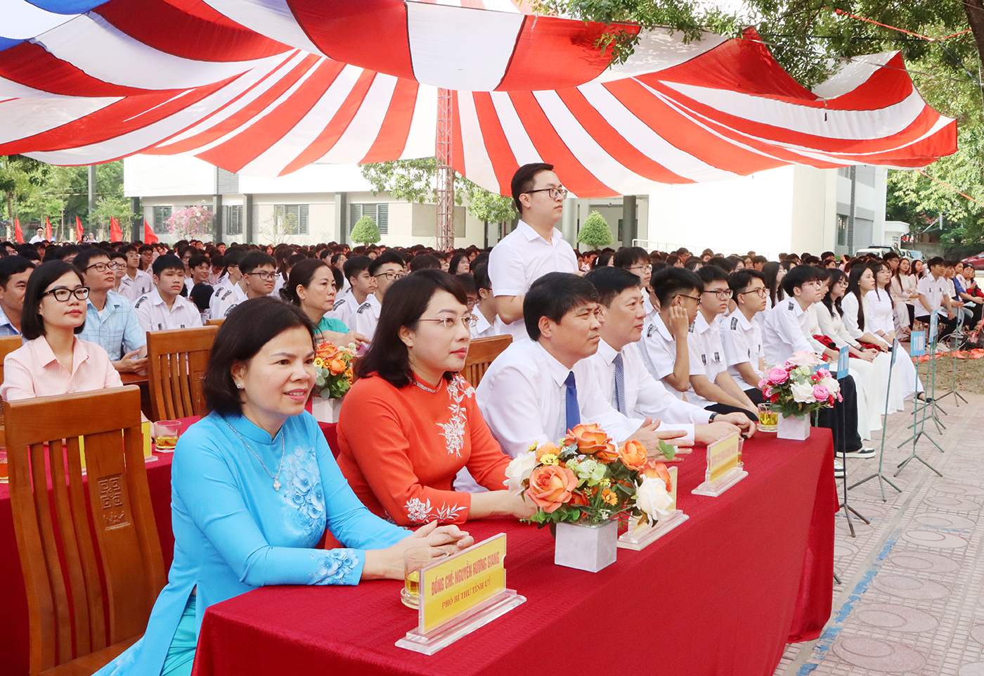 Phó Bí thư Tỉnh ủy Nguyễn Hương Giang (ảnh đầu) cùng các đại biểu dự lễ khai giảng.