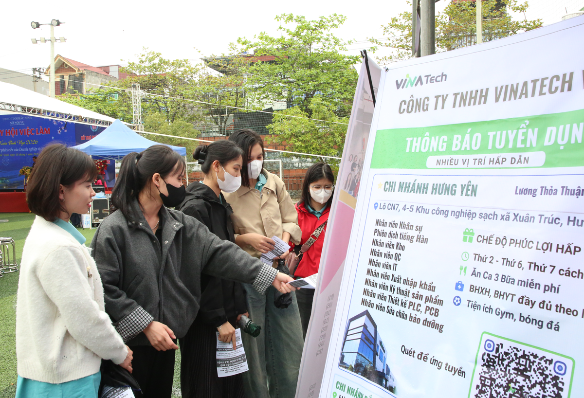 Tại Ngày hội, ở các khu vực tuyển dụng diễn ra sôi động; nhiều sinh viên, người lao động chủ động tìm hiểu thông tin, đăng ký phỏng vấn và ứng tuyển với nhà tuyển dụng thông qua 24 gian hàng trực tiếp của Trung tâm Dịch vụ việc làm tỉnh Bắc Ninh và các doanh nghiệp trên địa bàn tỉnh. Người lao động cũng được tư vấn, giới thiệu việc làm, phỏng vấn trực tiếp nhằm giúp tiếp cận nhiều vị trí việc làm phù hợp với trình độ, kỹ năng và nhu cầu của bản thân. Ngoài ra, Trung tâm dịch vụ việc làm các tỉnh, thành phố đã kết nối trực tuyến cũng mang đến hơn 110.000 vị trí việc làm ở nhiều lĩnh vực, tạo cơ hội cho người lao động lựa chọn.