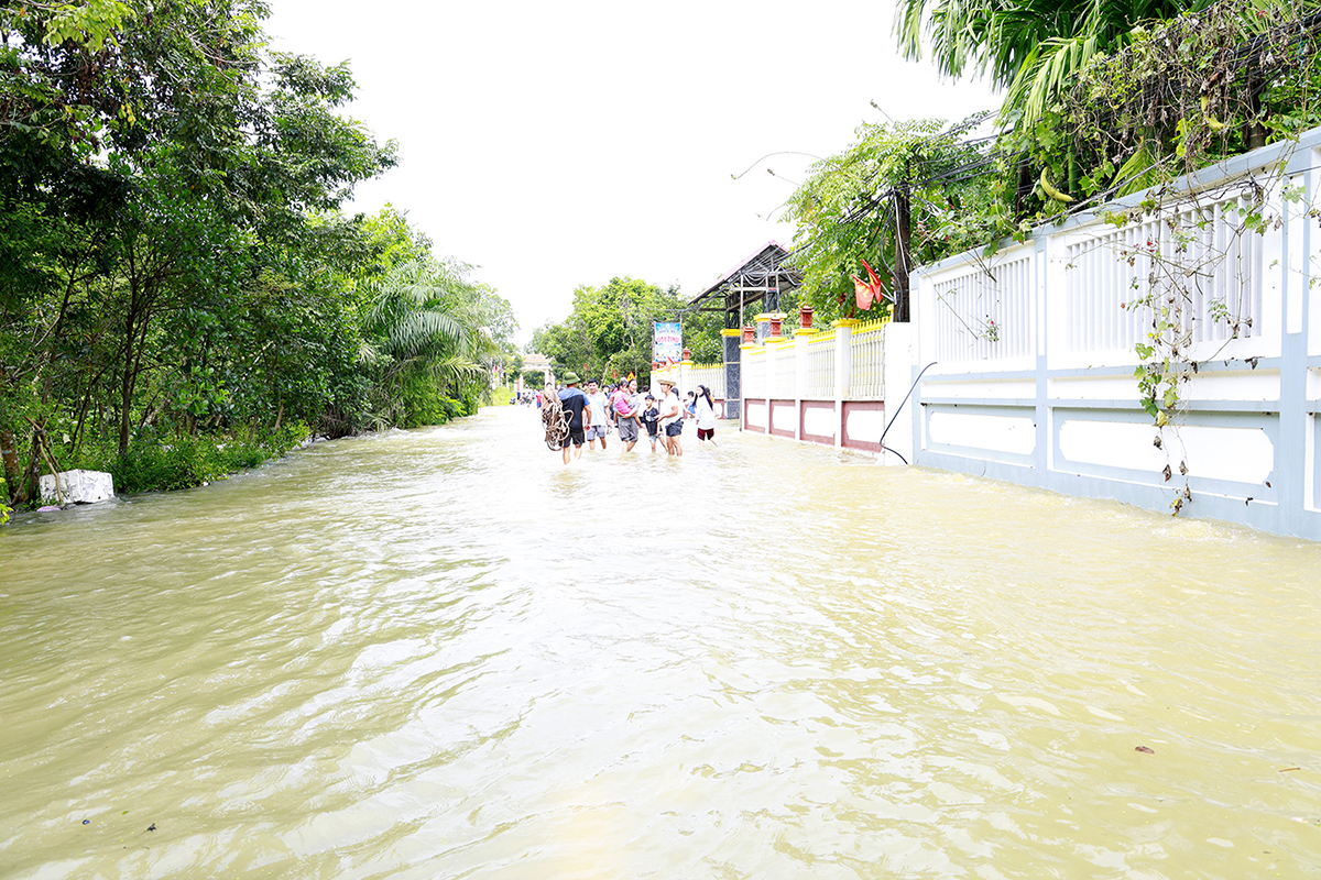 Đường vào thôn Vân Xuyên, xã Hoàng Vân nước ngập, người dân đi lại khó khăn.
