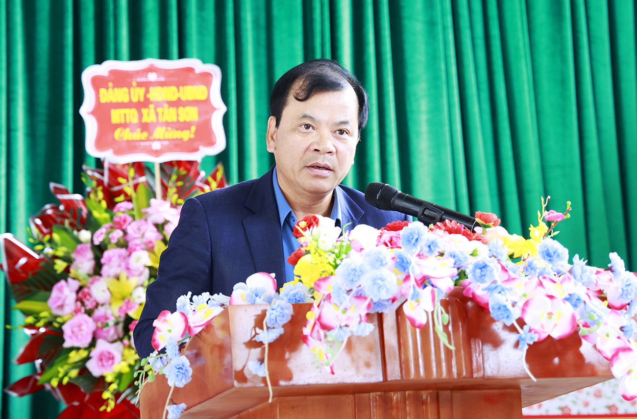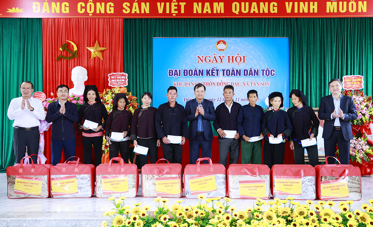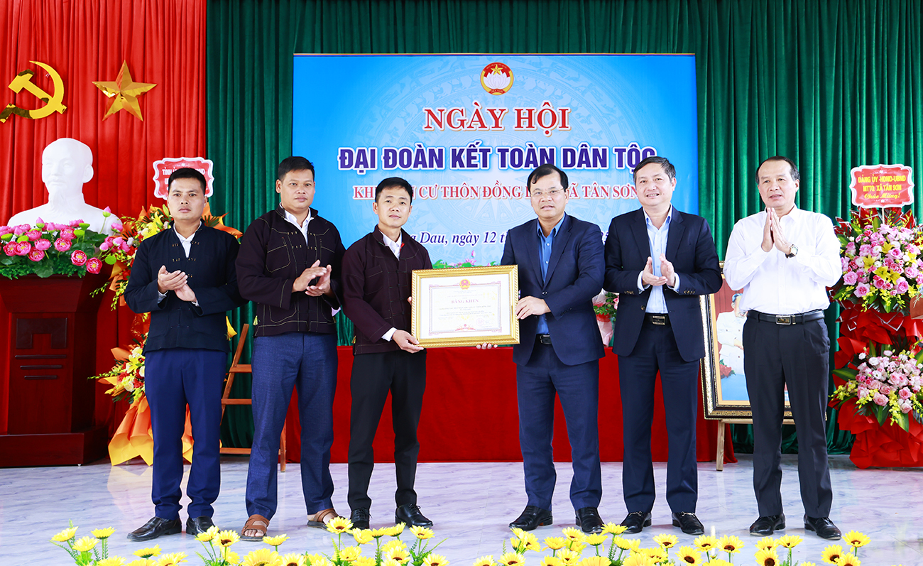 Nhân dịp này, Phó Chủ tịch UBND tỉnh Phan Thế Tuấn trao Bằng khen của Chủ tịch UBND tỉnh cho Ban Công tác Mặt trận, khu dân cư thôn Đồng Dau, xã Tân Sơn đã có thành tích xuất sắc trong thực hiện Cuộc vận động “Toàn dân đoàn kết xây dựng nông thôn mới, đô thị văn minh” năm 2024 - 2025.