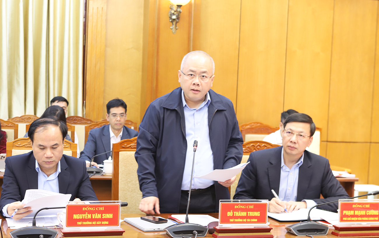Thứ trưởng Bộ Tài chính Đỗ Thành Trung phát biểu tại buổi làm việc.