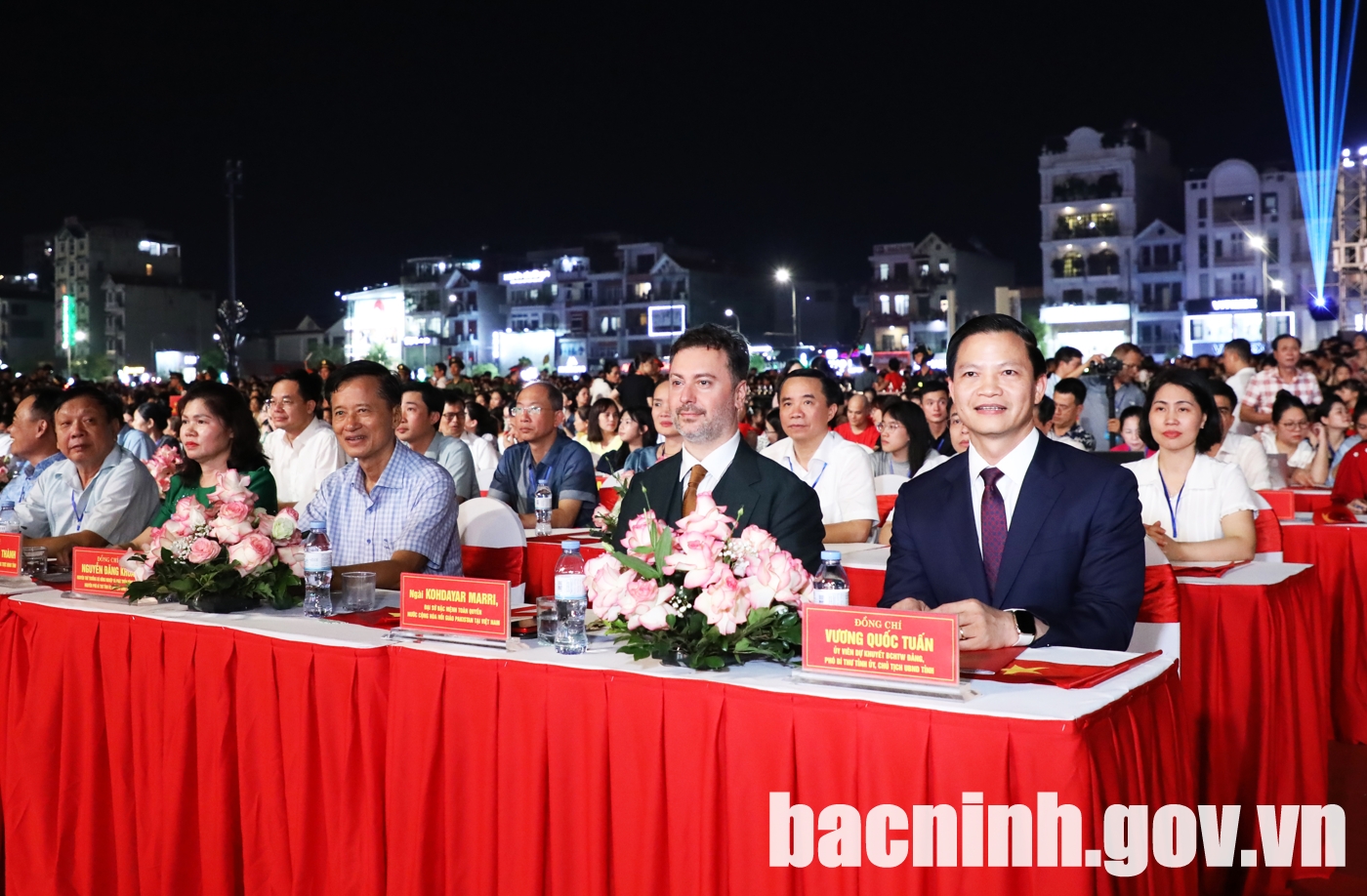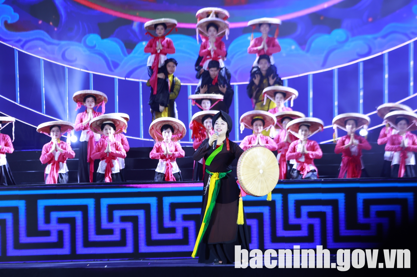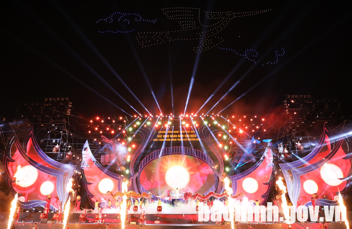Tiếp đó, Chương trình nghệ thuật với chủ đề “Bắc Ninh ngàn năm văn hiến - khát vọng vươn mình trong kỷ nguyên mới” kéo dài 120 phút, gồm 3 chương: Dòng chảy lịch sử - Ngàn năm văn hiến; Từ làng nghề truyền thống đến thủ phủ công nghiệp phía Bắc; Miền khát vọng tỏa sáng với sự tham gia của các nghệ sĩ nổi tiếng như: NSND Quốc Hưng, NSND Thúy Hường, các ca sĩ: Trọng Tấn, Hòa Minzy, Dương Hoàng Yến… cùng nhiều tiết mục quan họ đặc sắc, múa nghệ thuật hoành tráng.