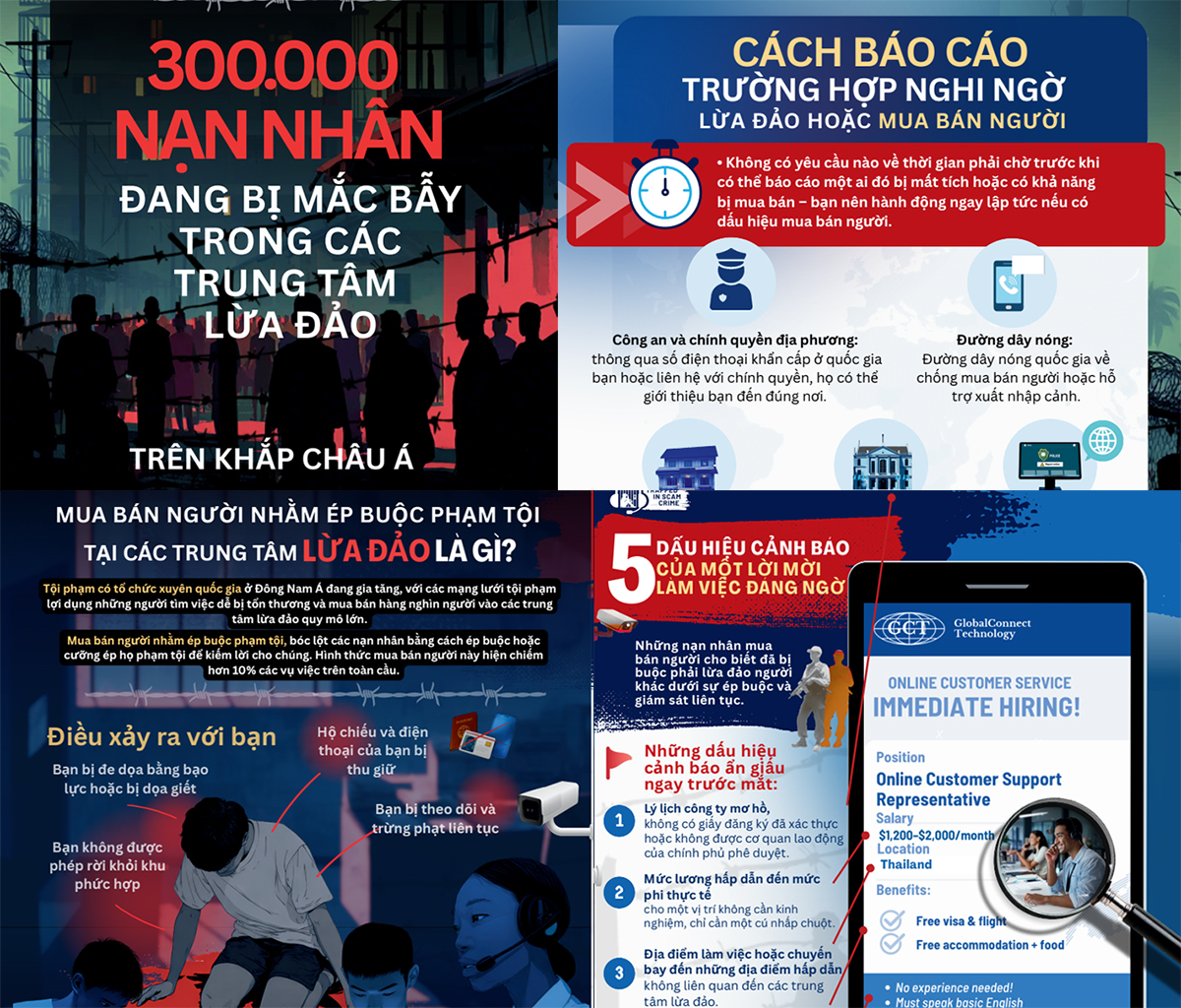 Báo và Phát thanh, Truyền hình Bắc Ninh tăng cường phát sóng, đăng tải tin, bài hướng dẫn kỹ năng nhận diện nhà tuyển dụng lừa đảo; xây dựng chuyên mục “Cảnh giác tội phạm mua bán người”; sử dụng hình ảnh, infographic từ chiến dịch “Trapped in Scam Crime”. Đồng thời, đẩy mạnh các tin, bài, phóng sự phản ánh trường hợp các đối tượng từng tham gia các trung tâm lừa đảo trở về địa phương và những hệ lụy pháp lý để tuyên truyền rộng rãi.
