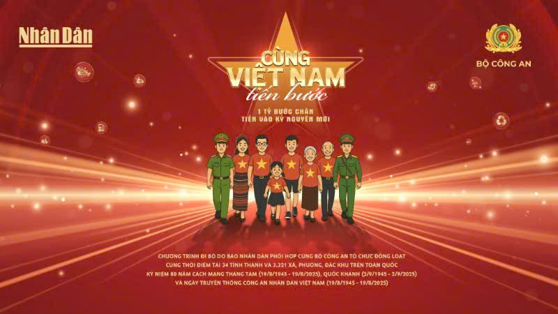 Nhân kỷ niệm 80 năm Cách mạng Tháng Tám (19/8/1945 - 19/8/2025), Quốc khánh 2/9 (2/9/1945 - 2/9/2025), Ngày truyền thống Công an Nhân dân Việt Nam (19/8/1945 - 19/8/2025) và 20 năm Ngày hội toàn dân bảo vệ an ninh Tổ quốc (19/8/2005 - 19/8/2025), Báo Nhân Dân phối hợp Bộ Công an phát động Chương trình đi bộ toàn quốc "Cùng Việt Nam tiến bước".