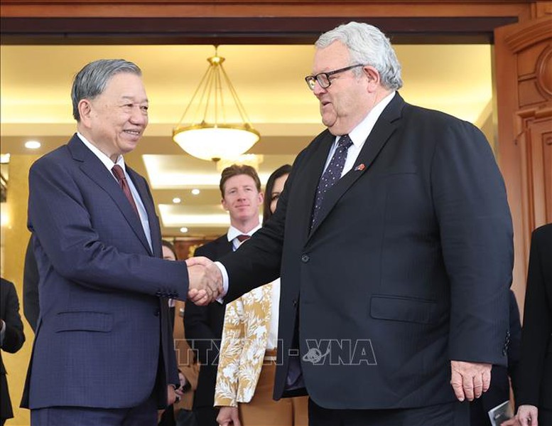 Tổng Bí thư Tô Lâm chào mừng Chủ tịch Quốc hội New Zealand Gerry Brownlee sang thăm Việt Nam - Ảnh: TTXVN