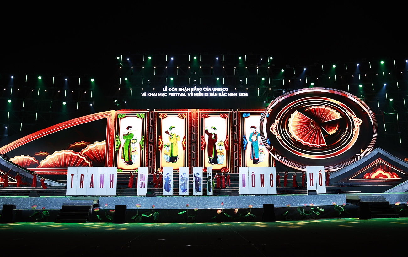 Tiết mục nghệ thuật tôn vinh tranh dân gian Đông Hồ.
