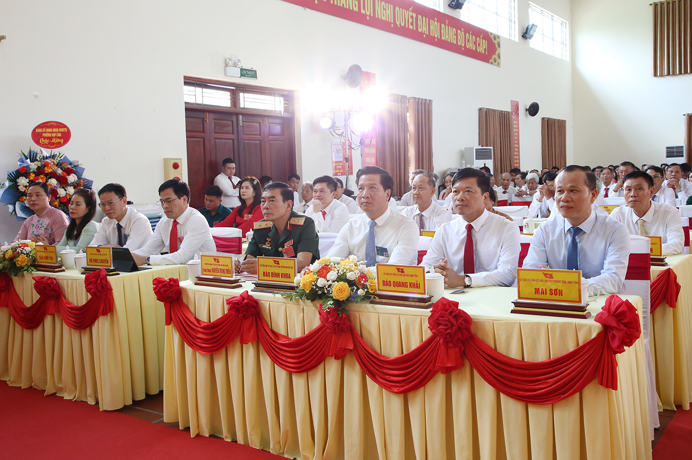 Tới dự và chúc mừng Đại hội có các đồng chí: Mai Sơn, Ủy viên ban Thường vụ Tỉnh ủy, Phó Chủ tịch Thường trực UBND tỉnh; Đào Quang Khải, Ủy viên Ban Thường vụ Tỉnh ủy, Phó Chủ tịch UBND tỉnh; Nguyễn Thị Hà, Uỷ viên Ban Thường vụ Tỉnh uỷ, Chủ tịch Uỷ ban MTTQ tỉnh; Trần Thị Vân, Phó Trưởng Đoàn Đại biểu Quốc hội tỉnh; lãnh đạo một số sở, ban, ngành, địa phương trong tỉnh.